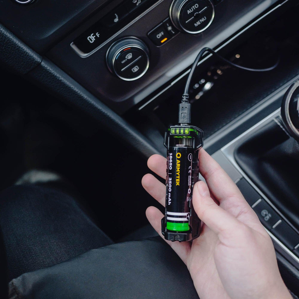Der Armytek Handy C1 Pro Charger ist ein vielseitiges, tragbares Ladegerät mit integrierter Powerbank-Funktion. Es erkennt automatisch den Batterietyp, den Ladezustand und den optimalen Ladestrom, um die Lebensdauer der Batterie zu maximieren. Dank seines speziellen „Wings“-Designs bietet es eine sichere Aufbewahrung der Batterien ohne zusätzliche Halterungen. Das Ladegerät unterstützt eine breite Palette von Batterietypen und verfügt über eine präzise Ladealgorithmus, der das schnelle Aufladen mit bis zu 1A ermöglicht.