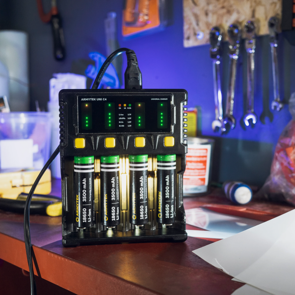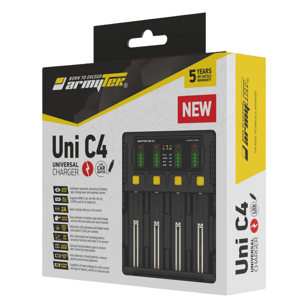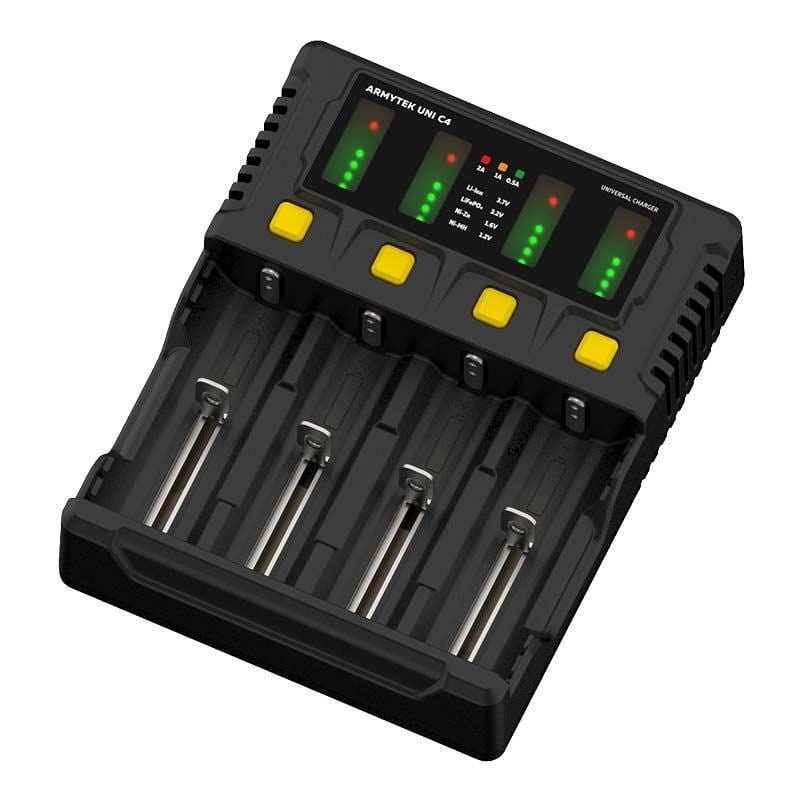Das Uni C4 Plug ist ein universelles Ladegerät mit intelligenter automatischer Erkennung von Batterietyp, Ladezustand und optimalem Strom. Bis zu 4 Batterien unterschiedlicher Typen werden gleichzeitig mit einem Strom von bis zu 2A geladen. Eine separate Taste für jeden Kanal ermöglicht eine einfache manuelle Steuerung.