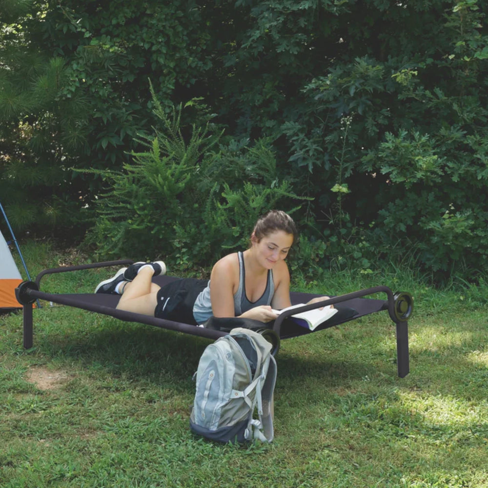 Das Disc-O-Bed Trundle ist die clevere Lösung, wenn Sie spontan eine zusätzliche Schlafmöglichkeit brauchen. Es lässt sich platzsparend unter ein Disc-O-Bed XL, XLT oder 2XL schieben und bei Bedarf schnell hervorholen. Mit den beiliegenden Beinverlängerungen kann die Höhe flexibel angepasst werden. Die robuste Liegefläche sorgt für bequemen Schlaf und ist pflegeleicht. Dank des bewährten Disc-Systems ist der Aufbau werkzeuglos und in wenigen Minuten erledigt. Perfekt für Camping, Übernachtungsgäste oder als praktisches Zusatzbett unterwegs.