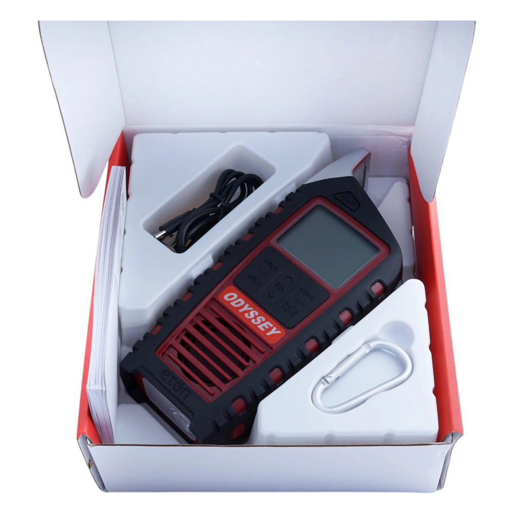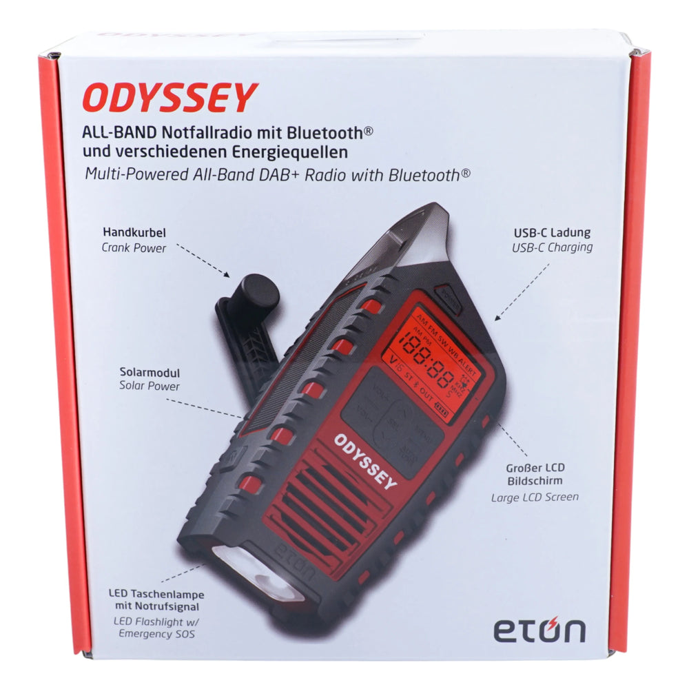 Das Eton Odyssey DAB+ ist ein zuverlässiges Multifunktionsradio für Outdoor-Abenteuer und Notfallsituationen. Es bietet gleich drei Energiequellen – Handkurbel, Solarpanel und wiederaufladbarer Akku – für maximale Unabhängigkeit. Neben DAB+ und UKW-Empfang überzeugt es mit praktischen Extras wie Taschenlampe, Notrufsirene und Wecker. Das robuste Gehäuse macht es zum idealen Begleiter bei jedem Wetter. Egal ob beim Camping, Wandern oder zu Hause für den Notfall – dieses Radio ist immer einsatzbereit.