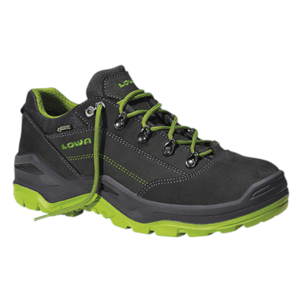 Der Lowa Renegade Work GTX LO S3 verbindet sportliches Design mit vollwertigem Arbeitsschutz. Das hydrophobierte Nubukleder und Textilmaterial in Grau/Grün sorgt für hohe Strapazierfähigkeit und moderne Optik. Dank GORE-TEX Performance Comfort bleiben deine Füsse auch bei nassen Bedingungen trocken und gut belüftet. Die VIBRAM® Gummi/PU-Sohle mit MONOWRAP®-Technologie bietet hervorragenden Halt, Dämpfung und Stabilität. Mit metallfreiem Durchtrittschutz und robuster Stahlkappe erfüllt der Schuh die S3-Sicherheitsnorm nach EN ISO 20345. Ideal für alle, die im Arbeitsalltag nicht auf Komfort verzichten möchten.