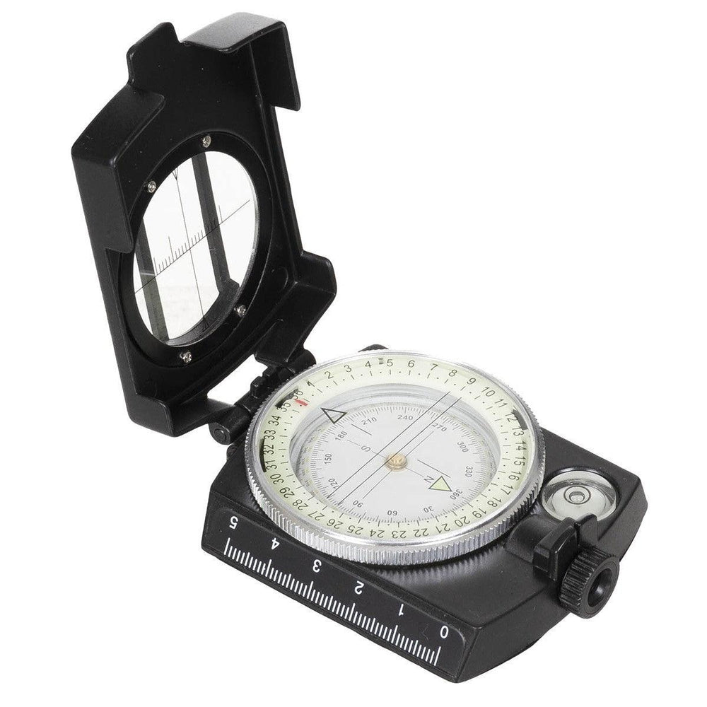 Mit diesem kompakten Kompass hast Du alles dabei, um Dich auf einer Wanderung oder während einem Ausflug mit einer Karte zu orientieren. Der Kompass ist flüssigkeitsgedämpft und hat ein Metallgehäuse. Die Kompassdose ist drehbar, hat einen Sucher mit Lupe und Kimme, sowie ein Deckel mit Sichtfenster und Peillinie. Ausserdem hat die Kompassrose von 360°-Einteilung und fluoreszierende Markierungspunkte. Zusätzlich dazu hat der Kompass seitlich eine cm-/Inch-Skala und ein Stativgewinde und Tabelle am Boden, sowie eine Libelle/Wasserwaage. Im Lieferumfang ist eine Bedienungsanleitung und eine Gürteltasche enthalten.