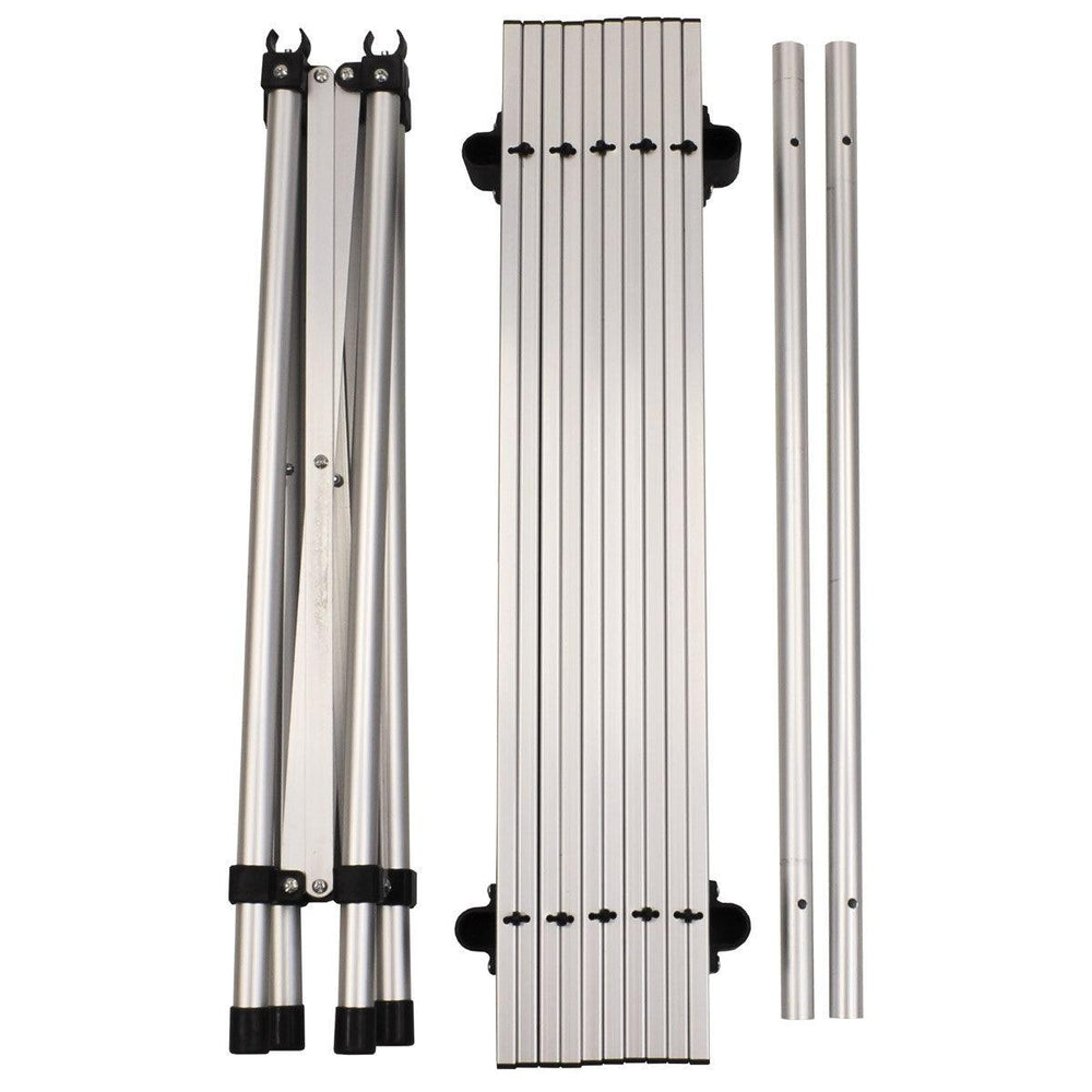 Passend zu Camping-oder Outdoor-Abenteuer ist der Camping-Tisch ein richtiges Must-Have. Der Tisch ist aus Aluminium und das Gestell ist klappbar. Alle Elemente der Tischplatte sind durch ein elastisches Band verbunden. Dies ermöglicht einen schnellen Aufbau. Im Lieferumfang ebenfalls enthalten, ist ein Transportbeutel mit Trageriemen und Kordelzug.