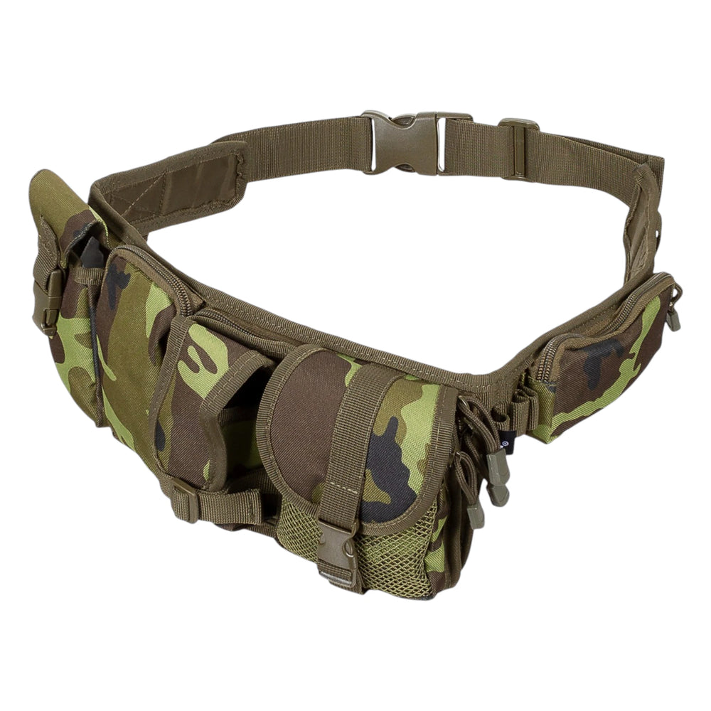 Dieser praktische Hüftgurt bietet viel Stauraum für deine Outdoor-Abenteuer. Mit sechs verschiedenen Taschen hast du schnellen Zugriff auf deine wichtigsten Utensilien. Der verstellbare Gurt passt bis zu einem Hüftumfang von 110 cm und wird mit einem robusten Klickverschluss gesichert. Dank zusätzlicher Schlaufen und einem D-Ring kannst du weiteres Zubehör befestigen. Reissverschlüsse, Klett- und Klickverschlüsse sorgen für eine sichere Aufbewahrung. Perfekt für Wanderungen, Camping oder den taktischen Einsatz.