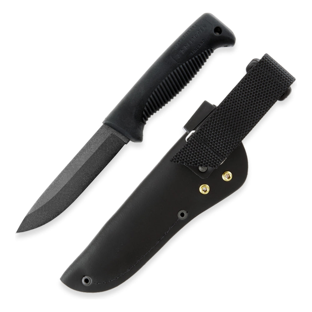 Das M07 Ranger Puukko PTFE Leder kombiniert eine widerstandsfähige Klinge mit klassischem Tragekomfort. Die 11,9 cm lange und 4,25 mm starke Klinge aus 80CrV2 Kohlenstoffstahl ist mit einer schwarzen PTFE-Beschichtung versehen, die Korrosion verhindert, Reibung reduziert und die Reinigung erleichtert. Mit HRC 59 bietet sie hohe Schnitthaltigkeit und Robustheit für Bushcraft, Jagd und Survival. Der ergonomische TPE-Griff liegt auch bei Nässe rutschfest und sicher in der Hand. Geliefert wird das Messer mit einer schwarzen Lederscheide, die Funktionalität und traditionelle Optik vereint. Mit nur 180 g Gewicht und einer Gesamtlänge von 24,3 cm ist es ein zuverlässiger Begleiter für anspruchsvolle Outdoor-Abenteuer.
