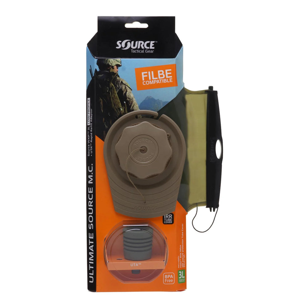 Das Ultimate Source M.C. Hydration System ist speziell für die Integration mit der US Marine Corps FILBE Ausrüstung entworfen und vereint ein niedriges Profil mit den hochgeschätzten Vorteilen der Source Hydration Technologie. Dieses System, das mit einem Fassungsvermögen von 3 Litern ausgestattet ist, garantiert dank der Technologien wie Glass-Like, Care-Free, Grunge Guard, Taste-Free und Widepac Closure eine sichere, geschmackfreie und pflegeleichte Hydration. Es ist mit den Helix und Storm Ventilen kompatibel, die eine einfache Benutzung ohne Auslaufen ermöglichen und für schnelle Reinigung leicht demontiert werden können.
