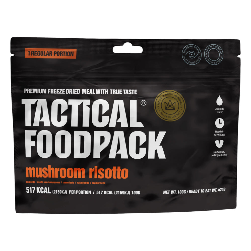 Erlebe den preisgekrönten Geschmack unseres cremigen Pilzrisottos – ideal für deine Outdoor-Abenteuer! Hergestellt mit Arborioreis, zarten Champignons und verfeinert mit Weisswein, Butter und Parmesan, bringt dieses Gericht ein Stück Gourmetküche in die Natur. Gemüsebrühe, Sahne, Knoblauch und Zwiebeln sorgen für eine harmonische Balance der Aromen und eine glatte Textur. Einfach mit heissem Wasser zubereitet, ist dieses Risotto die perfekte Wahl für eine schnelle, aber hochwertige Mahlzeit unterwegs.