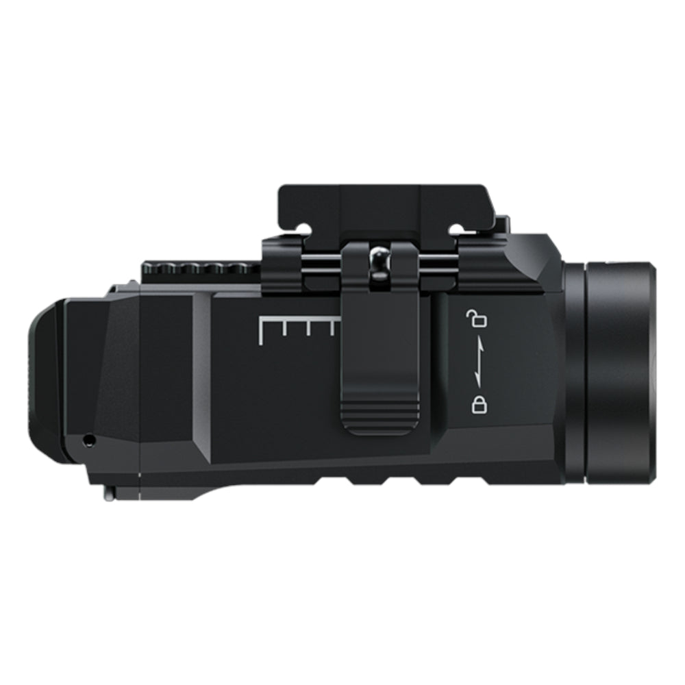 Die Fenix GL07 ist eine kompakte, taktische Waffenlampe mit 700 Lumen Lichtleistung und 240 Metern Reichweite – ideal für präzises Zielen im Einsatz. Die modulare Gleitschiene mit Schnellverschluss (QD-Hebel) erlaubt eine einfache und sichere Montage an gängigen Waffenschienen (GL & 1913). Über den Doppelschalter am Heck lassen sich Dauerlicht und Strobe schnell aktivieren – auch beidhändig. Die Lampe wird mit einer USB-C aufladbaren 16340-Batterie betrieben, ist aber auch mit CR123A-Batterien kompatibel. Hergestellt aus robustem Aluminium, wasserfest nach IPX7 und bereit für harte Bedingungen.