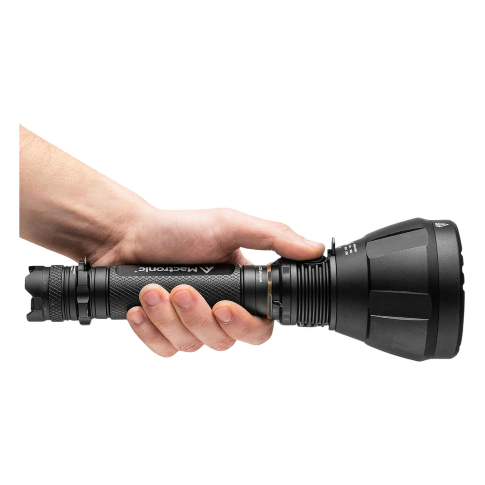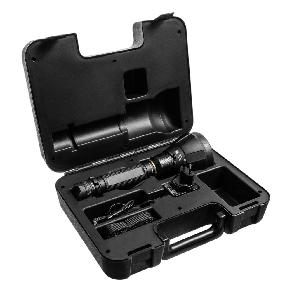 Die Mactronic Blitz LR11 ist eine leistungsstarke Suchlampe mit einer beeindruckenden Leuchtweite von bis zu 1100 Metern. Mit 1100 Lumen im Boost-Modus bietet sie eine gleichmässige, weite Ausleuchtung – ideal für Einsätze bei Nacht und in offenem Gelände. Fünf verschiedene Leuchtmodi ermöglichen flexible Anpassung an jede Situation, von intensiver Ausleuchtung bis zum Signallicht. Dank IP67-Zertifizierung ist die Lampe staubdicht, wasserfest und stossgeschützt bis 1 Meter. Der Dual Source System erlaubt den Betrieb mit Akku oder Standardbatterien – für maximale Einsatzbereitschaft. Mit Ladeanzeige, Schalterverriegelung und robustem Transportkoffer ist sie ein verlässliches Werkzeug für Profis im Einsatz.