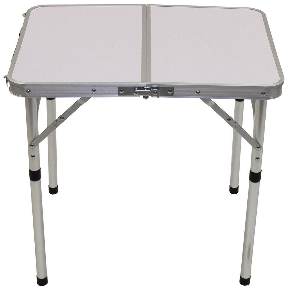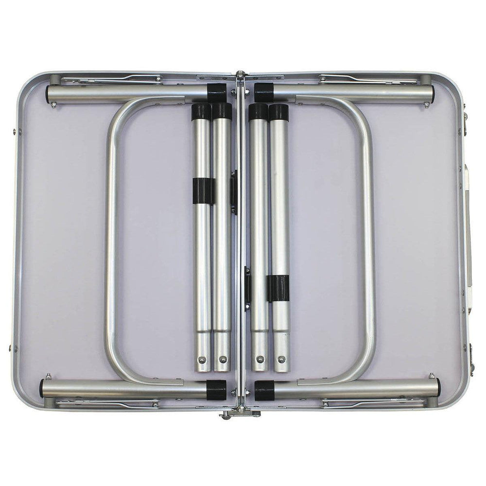 Der klappbare Camping-Tisch aus Aluminium ist durch Steck-und Klappverbindungen schnell im Auf-und Abbau. Ein Tragegriff erleichtert den Transport des Camping-Tisch. Ebenso sind zwei verschiedene Tischhöhen möglich: ca. 25 cm und ca. 55 cm. Die Platte des Camping-Tisch hat eine beschichtete MDF-Platte.