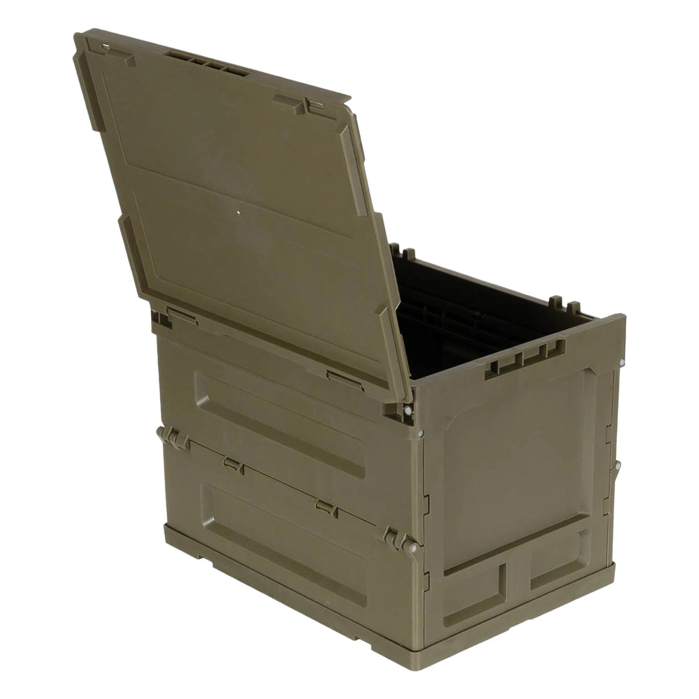 Die MFH Kunststoffbox faltbar mit 20 Litern Fassungsvermögen ist eine praktische Lösung für platzsparendes Verstauen und Transportieren. Diese robuste und strapazierfähige Box lässt sich einfach zusammenklappen und stapeln. Sie verfügt über einen integrierten Klappdeckel und klappbare Seitenwände, die innen arretierbar sind. Eine faltbare Frontklappe mit zwei Sicherungsschiebern sorgt für zusätzlichen Schutz. Zusammengeklappt ist die Box nur ca. 9,5 cm hoch und lässt sich somit leicht verstauen.
