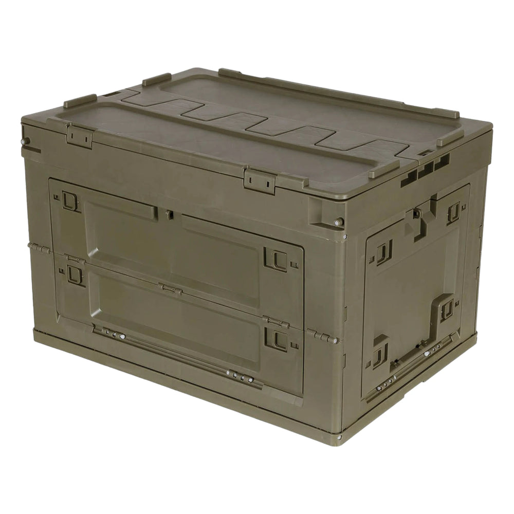 Die MFH Kunststoffbox faltbar mit 60 Litern Fassungsvermögen ist ideal für platzsparendes Verstauen und Transportieren. Sie ist stabil und strapazierfähig, wodurch sie auch schweren Belastungen standhält. Die Box verfügt über einen 2-teiligen, integrierten Klappdeckel und klappbare Seitenwände, die innen arretierbar sind. Eine faltbare Frontklappe und eine Seitenklappe mit jeweils 4 Sicherungsschiebern und Absperröse bieten zusätzlichen Schutz und Sicherheit. Zusammengeklappt misst die Box nur ca. 10,5 cm in der Höhe und ist somit leicht zu verstauen.