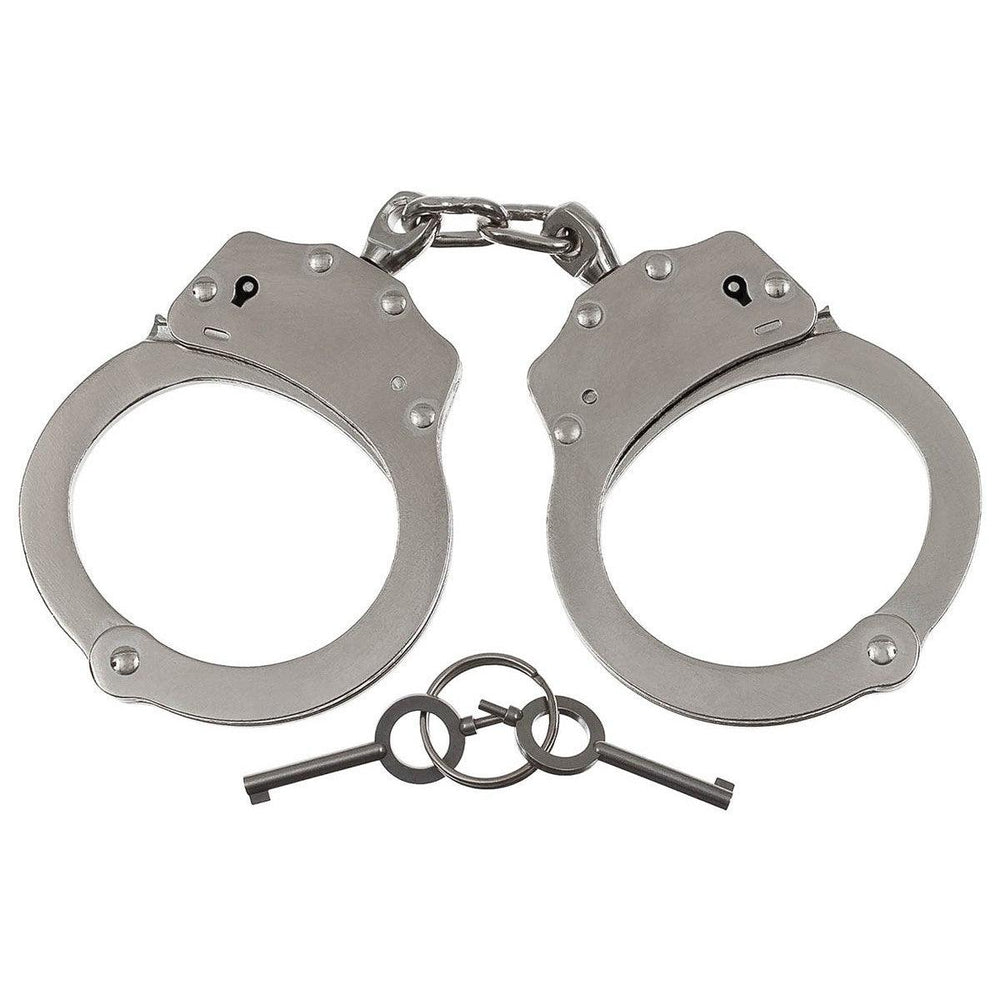 Die Stahl Handschellen sind der Klassiker mit hochwertigem "Double-Lock", 2 symmetrischen Schellen und mit Sicherheitsrille. Die Zwischenkette ist aus zwei verschweissten Gliederung und mit einem Drehlager verbunden. Im Lieferumfang sind 2 Schlüssel enthalten.