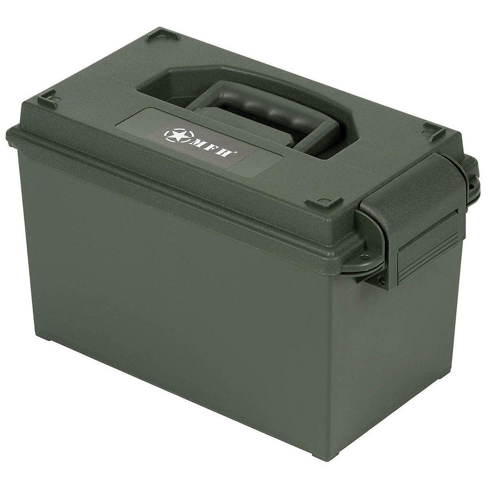 Die MFH US Munitionskiste Cal. 50mm ist eine robuste Aufbewahrungslösung aus schlagfestem Kunststoff. Mit spritzwassergeschütztem Design bietet sie optimalen Schutz für Inhalte. Der Deckel verfügt über eine Gummidichtung für zusätzliche Sicherheit. Ein Schnappverschluss und 2 Absperrösen gewährleisten eine zuverlässige Verschlussmechanik. Der versenkbare Tragegriff ermöglicht eine bequeme Handhabung, während die stapelbare Eigenschaft Platz spart und Organisation erleichtert. Ideal für vielfältige Einsatzzwecke.
