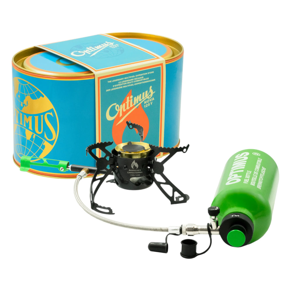 Zum 125-jährigen Jubiläum präsentiert Optimus eine exklusive, auf 1899 Stück limitierte Sonderedition des legendären Nova Kochers. Geliefert wird er in einer stilvollen Blechdose mit Kartonhülle und einer individuellen Lasergravur. Der Nova überzeugt mit seiner Multifuel-Kompatibilität, einem schnell zündenden Brenner und einer präzisen Flammenregelung. Die langlebige Aluminiumpumpe mit Entlüftungsfunktion sorgt für Sicherheit und Komfort. Zusätzlich enthält das Set einen Preiselbeer-Erdbeer-Kuchen von Trek’n Eat in einer speziellen Jubiläumsdose. Ein echtes Sammlerstück für Outdoor-Enthusiasten und Expeditionsliebhaber.