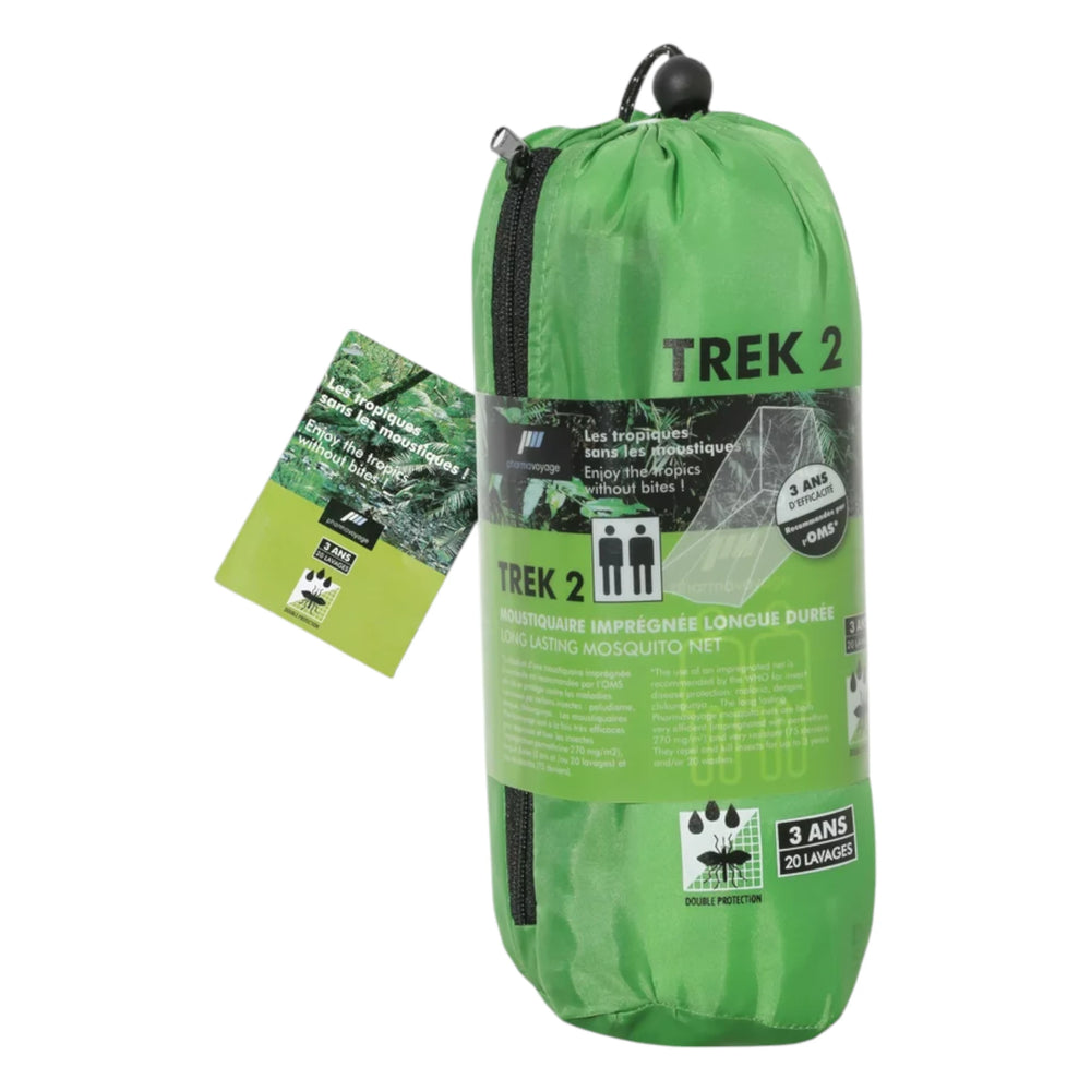 Das Pharmavoyage Moskitonetz Trek 2 bietet zuverlässigen Schutz für zwei Personen vor Mücken und anderen Insekten. Mit einer Imprägnierung von 270 mg/m² Permethrin schützt es effektiv vor insektenübertragenen Krankheiten wie Malaria, Dengue und Chikungunya – entsprechend den Empfehlungen der WHO. Das Netz ist aus widerstandsfähigem 75 Denier-Material gefertigt, dabei ultraleicht und kompakt, sodass es sich ideal für Camping, Reisen und Outdoor-Aktivitäten eignet.