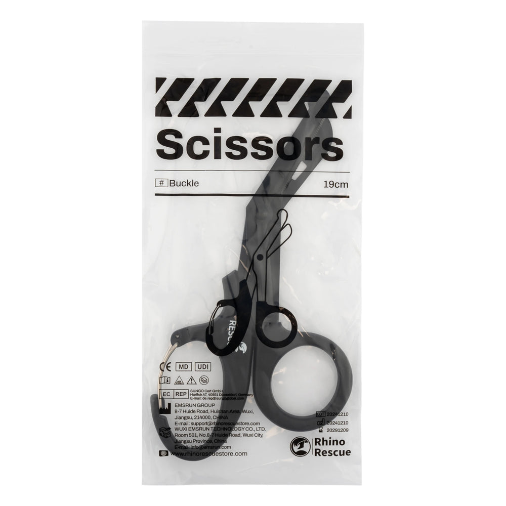 Die Rhino Rescue Notfall-Medizinschere ist ein professionelles Werkzeug für schnelle und sichere Schnitte im Einsatz. Mit 18.5 cm langen Edelstahlklingen und feiner Zahnung durchtrennt sie zuverlässig Kleidung, Gurte oder Verbände. Die abgewinkelte Spitze mit stumpfer Kante minimiert das Verletzungsrisiko beim Schneiden direkt am Patienten. Ergonomische, spritzgegossene Griffe sorgen für sicheren Halt auch mit Handschuhen. Ein integrierter, stahlverstärkter Karabiner ermöglicht die Befestigung an Gürtel oder Ausrüstung. Ideal für IFAK, Trauma Kit oder taktische Notfallausrüstung.