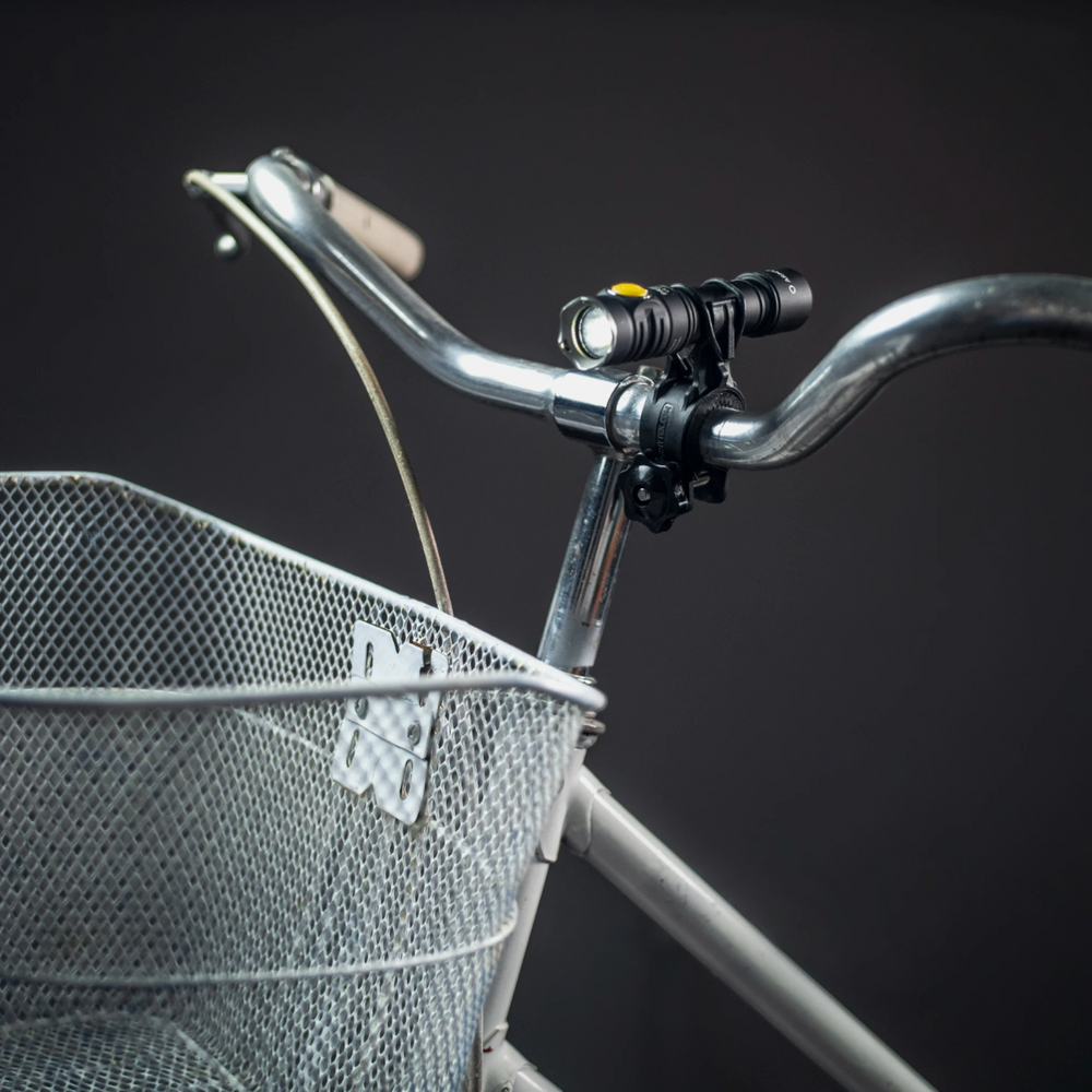 Die Armytek ABM-01 Fahrradhalterung ist speziell dafür entwickelt, eine Taschenlampe sicher am Fahrradlenker zu befestigen. Sie gewährleistet eine feste Fixierung, sodass die Lampe auch bei unruhiger Fahrt stabil bleibt. Diese Halterung ist kompatibel mit den Lampenmodellen Wizard, Tiara, Elf sowie Prime C2, Prime C2 Pro, Prime A2 und Prime A2 Pro, die einen Gehäusedurchmesser von 24,5 mm haben. Hergestellt aus leichten und robusten Materialien, lässt sich die Halterung einfach und mit einer Handbewegung montieren.