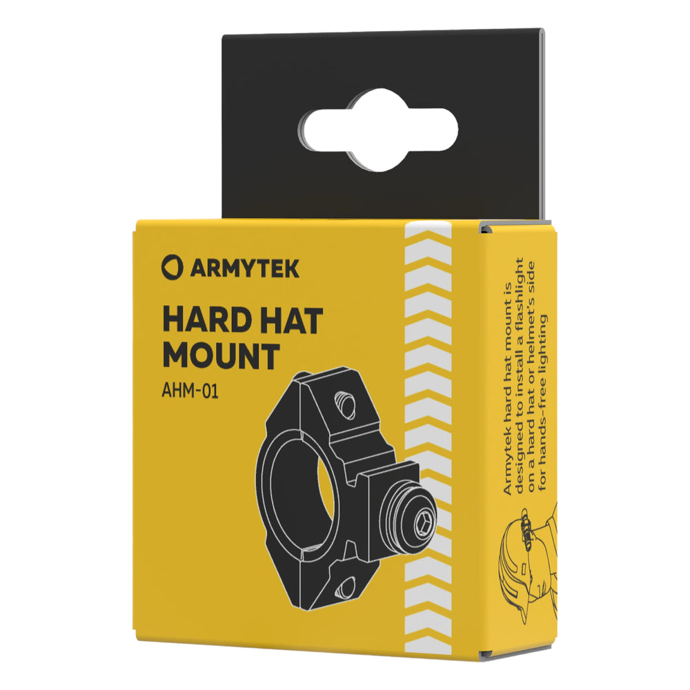 Die Armytek AHM-01 Schutzhelmhalterung ist speziell dafür entwickelt, eine Taschenlampe seitlich an einem Schutzhelm oder Bauhelm zu befestigen. Dieses Design ermöglicht eine freihändige Nutzung, ideal für Arbeiten mit Taschenlampen im klassischen Format. Die Halterung ist kompatibel mit Taschenlampen, die einen Körperdurchmesser von 21–26 mm und einen maximalen Kopfdurchmesser von 41 mm haben. Sie wird an der Seite des Helms über einen Montageschlitz angebracht oder kann alternativ an einem Helm mit einem 6-mm-Bohrloch installiert werden.