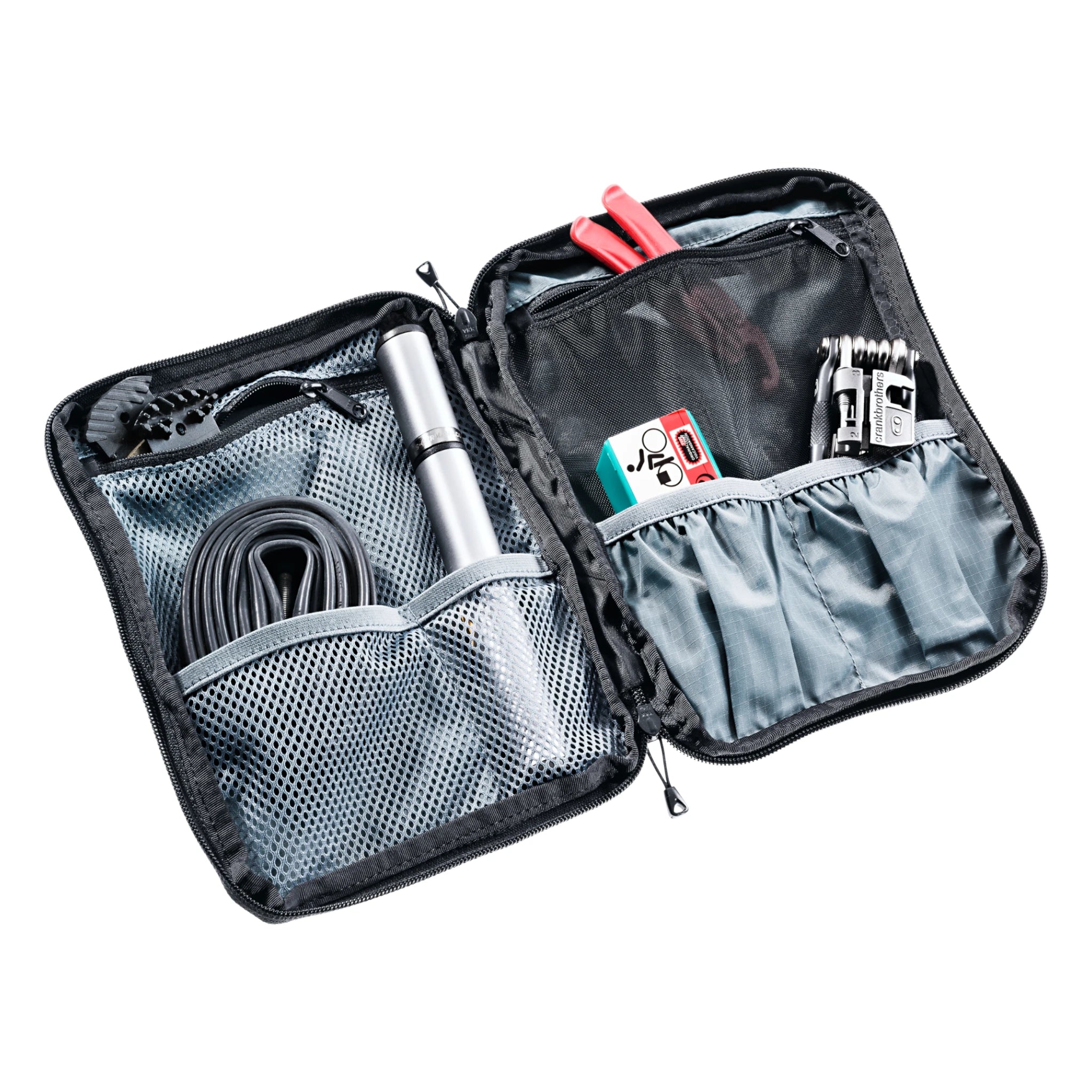 Die Deuter Tool Pocket ist die perfekte Lösung zur sicheren Aufbewahrung deiner Bike-Werkzeuge – ideal für lange Touren und tägliche Einsätze. Sie passt exakt in die Fronttasche des Trans Alpine Rucksacks und bleibt so stets griffbereit. Dank vier Stecktaschen und Netzfächern behältst du deine Tools gut organisiert und findest alles auf einen Blick. Das robuste, wasserabweisende Material schützt zuverlässig vor Feuchtigkeit und Schmutz. Hergestellt aus 100 % recyceltem Industrieabfall und PFAS-frei imprägniert – für nachhaltige Abenteuer auf zwei Rädern.