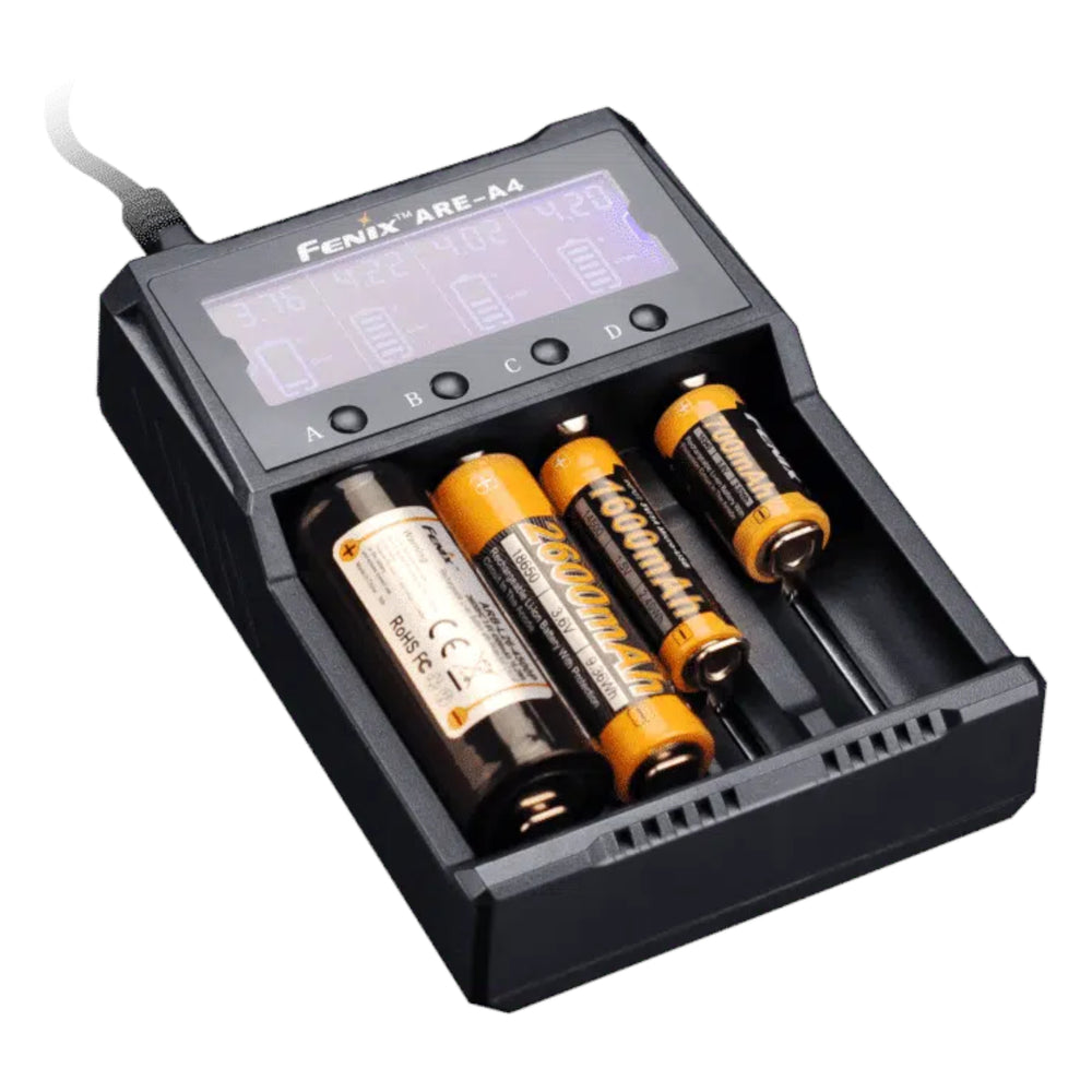 Das Fenix ARE-A4 ist ein intelligentes Ladegerät für bis zu vier Akkus gleichzeitig – ideal für alle, die mehrere Geräte im Einsatz haben. Es unterstützt eine Vielzahl von Akku-Typen, darunter Li-Ionen, Ni-MH und Ni-Cd in verschiedenen Grössen. Dank integriertem LCD-Display hast du jederzeit den Ladezustand jedes einzelnen Akkus im Blick. Ein elektronisches Managementsystem sorgt für eine effiziente, sichere Ladung und verlängert die Lebensdauer der Batterien. Der Betrieb ist sowohl über 230 V Netzspannung als auch über DC 12–24 V möglich – perfekt für zuhause und unterwegs. Zahlreiche Schutzfunktionen garantieren maximale Sicherheit beim Laden.