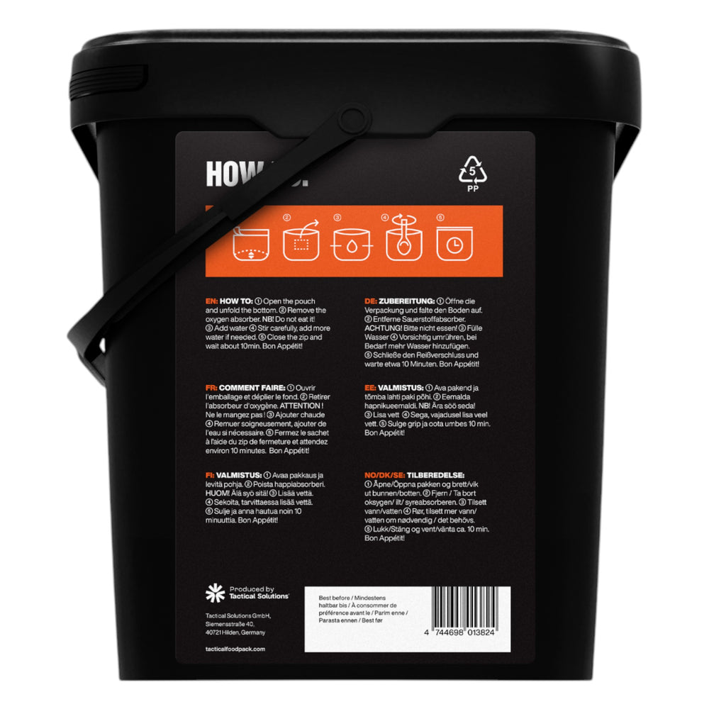 Das Tactical Foodpack Weekpack Juliett ist die perfekte vegane Verpflegungslösung für eine ganze Woche. Enthalten sind 21 verschiedene vegane Tactical Foodpack Mahlzeiten, die durch Gefriertrocknung eine lange Haltbarkeit bieten. Die Gerichte lassen sich einfach mit (heissem) Wasser zubereiten und eignen sich ideal für Outdoor-Abenteuer, Notvorräte oder Expeditionen. Mit insgesamt 10'290 kcal bietet dieses Paket eine ausgewogene und energiereiche Ernährung. Entwickelt für extreme Bedingungen, lagerfähig von -10 °C bis +30 °C. Hergestellt in Deutschland.