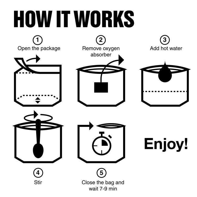 • Bieten Dir ein dauerhaft haltbares, sehr leicht und schnell zuzubereitendes Angebot an Gerichten für unterwegs