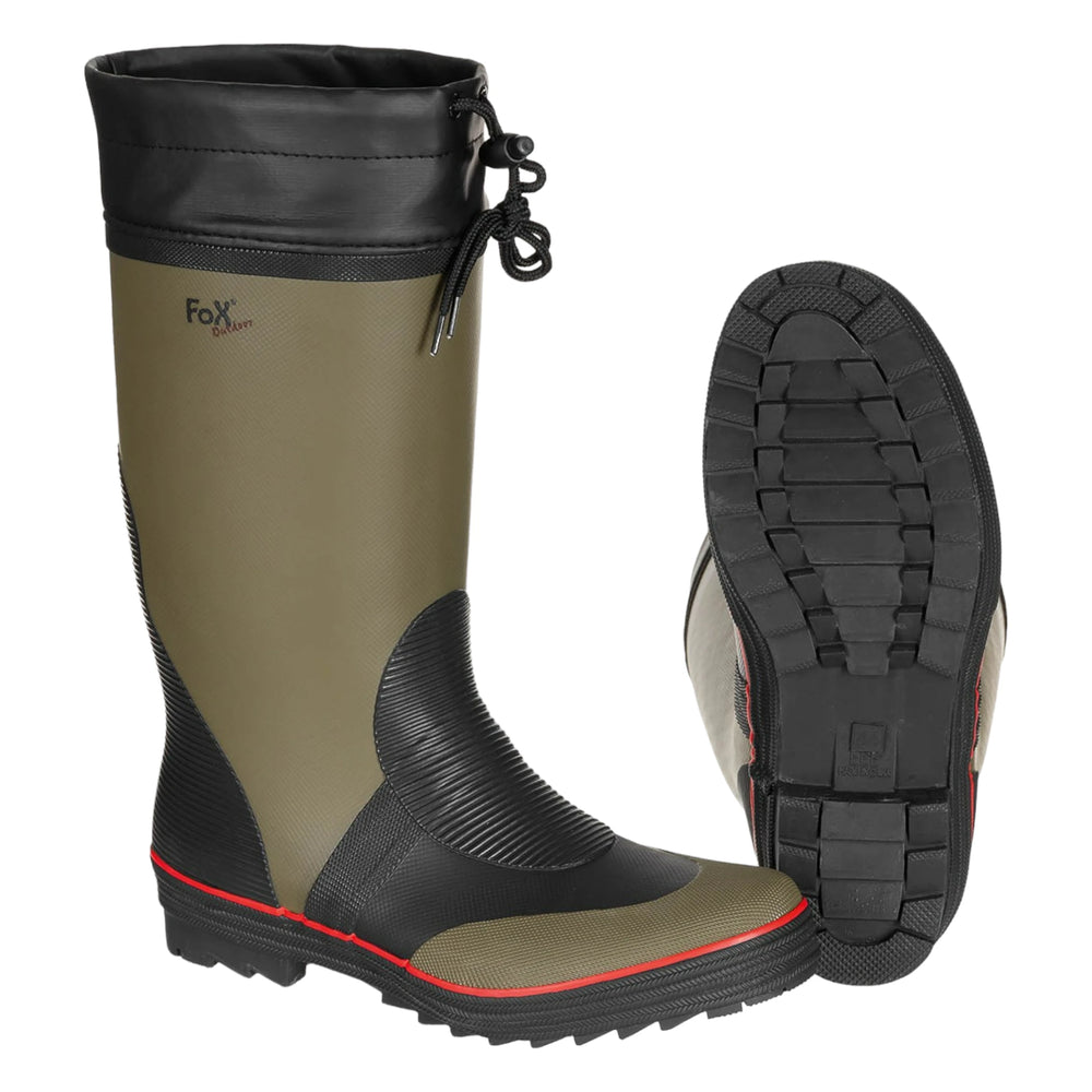 Die Fox Outdoor Gummistiefel sind perfekt für nasse und schlammige Bedingungen. Der Schaft ist mit einer Stulpe und einem Kordelzug ausgestattet, um zusätzlichen Schutz vor Wasser und Schmutz zu bieten. Eine herausnehmbare Innensohle sorgt für hohen Tragekomfort und einfache Reinigung. Die profilierte Laufsohle gewährleistet sicheren Halt auf jedem Untergrund. Diese robusten Gummistiefel sind aus hochwertigen Materialien gefertigt, die für Langlebigkeit und Komfort sorgen. Ideal für Outdoor-Aktivitäten bei jedem Wetter.