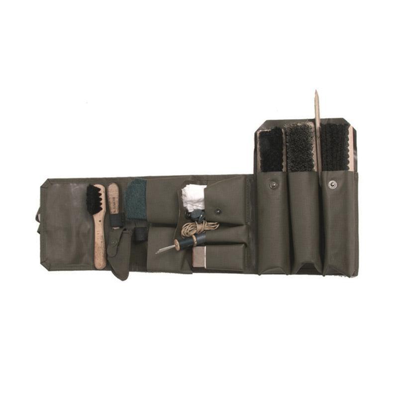Beim Schuhputzzeug / Mannsputzzeug der Schweizer Armee handelt es sich um das bewährte Originalprodukt, welches im Schweizer Militär täglich im Einsatz war. Das Schuhputzzeug-Set eignet sich perfekt für die Pflege Deiner Kampfstiefel. In dem Set erhältst Du eine Schuhbürste, eine Glanzbürste, eine Kleiderbürste, ein Fettbürstchen, ein Wichselbürstchen sowie Lederpflegematerial. Der Zustand des Putzzeugs ist gebraucht und der Inhalt kann deshalb variieren und abweichen vom Foto. Das Verbrauchsmaterial ist teilweise stark gebraucht oder leer.
