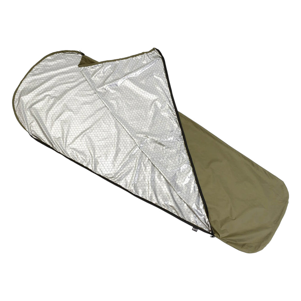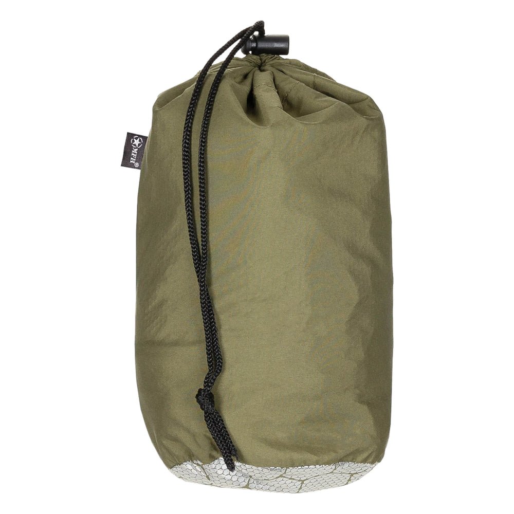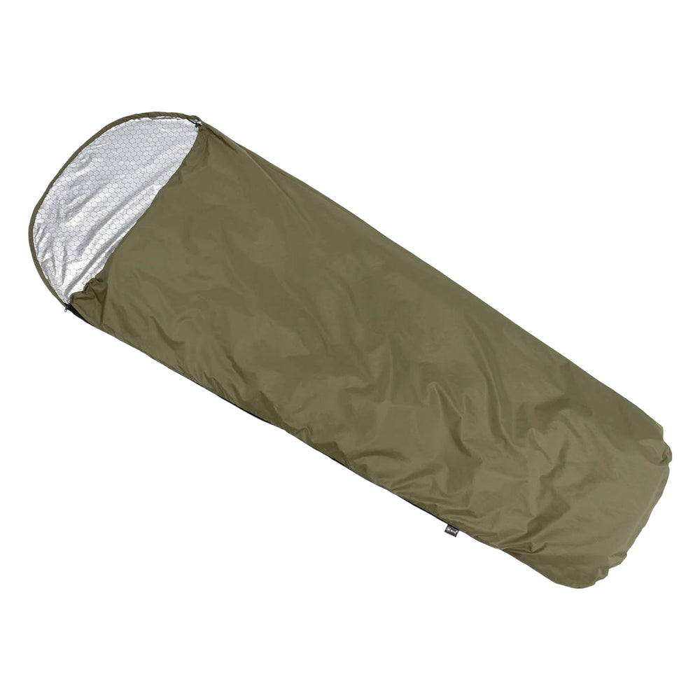 Der MFH Thermo Schlafsacküberzug ist vielseitig einsetzbar und kann auch als Notfallschlafsack verwendet werden. Er ist wasserabweisend, extrem leicht und kompakt verstaubar, was ihn ideal für Outdoor-Abenteuer macht. Der Überzug schützt effektiv vor Kälte, Nässe, Wind und Hitze. Die Innenseite ist alubeschichtet, um die Wärme optimal zu reflektieren. Ein seitlicher Reissverschluss und ein Kopfteil in Kapuzenform mit Kordelzug bieten zusätzlichen Komfort. In der mitgelieferten Transporttasche mit Kordelzug lässt sich der Schlafsacküberzug platzsparend verstauen.