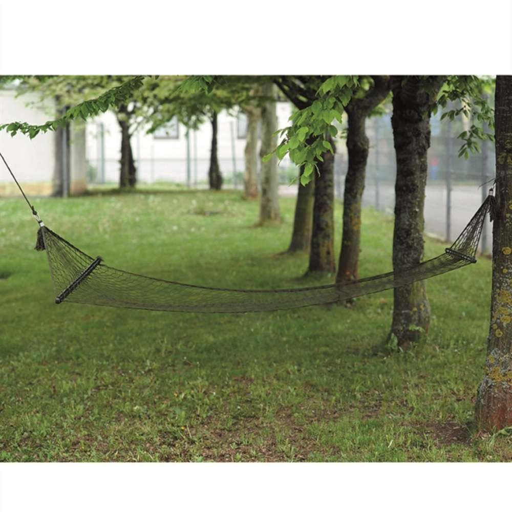 Die Mil-Tec Hängematte mit Querstäbchen bietet entspannten Komfort für Outdoor-Abenteuer, Camping oder den Garten. Das strapazierfähige Nylon-Netz sorgt für hohe Atmungsaktivität, während die stabilen Holz-Querstäbe die Liegefläche offenhalten. Mit einer Tragkraft von bis zu 120 kg ist sie robust und zuverlässig. Dank ihres leichten Designs und kompakten Formats lässt sie sich einfach transportieren und aufhängen.