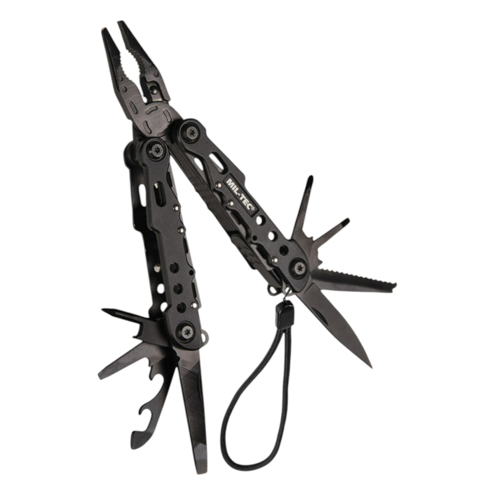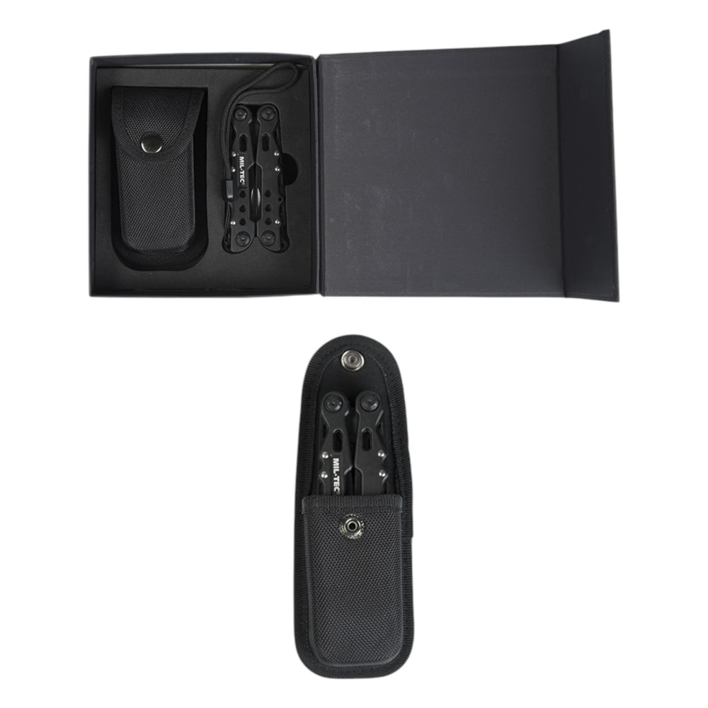 Das Mil-Tec Multi Tool Black Large ist ein zuverlässiger Begleiter für Outdoor-Abenteuer, Camping und den Alltag. Hergestellt aus robustem 2Cr13 Stahl mit einem widerstandsfähigen Aluminiumgriff, vereint es neun praktische Werkzeuge in einem kompakten Design. Alle Tools lassen sich mit nur einer Hand ausklappen, während eine stabile Arretierung für sicheres und präzises Arbeiten sorgt. Geliefert wird das Multitool mit passendem Nylon-Etui und einer Geschenkbox – ideal auch als Geschenkidee.