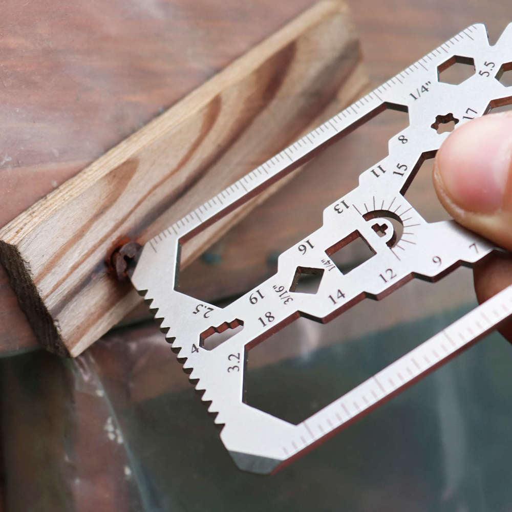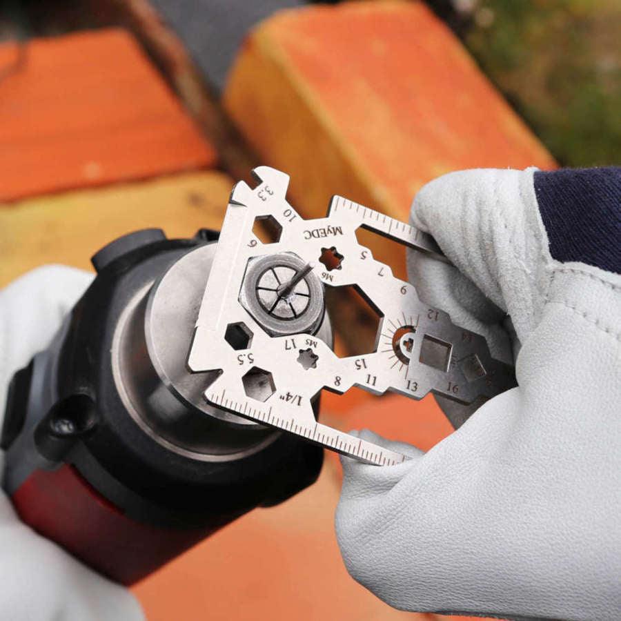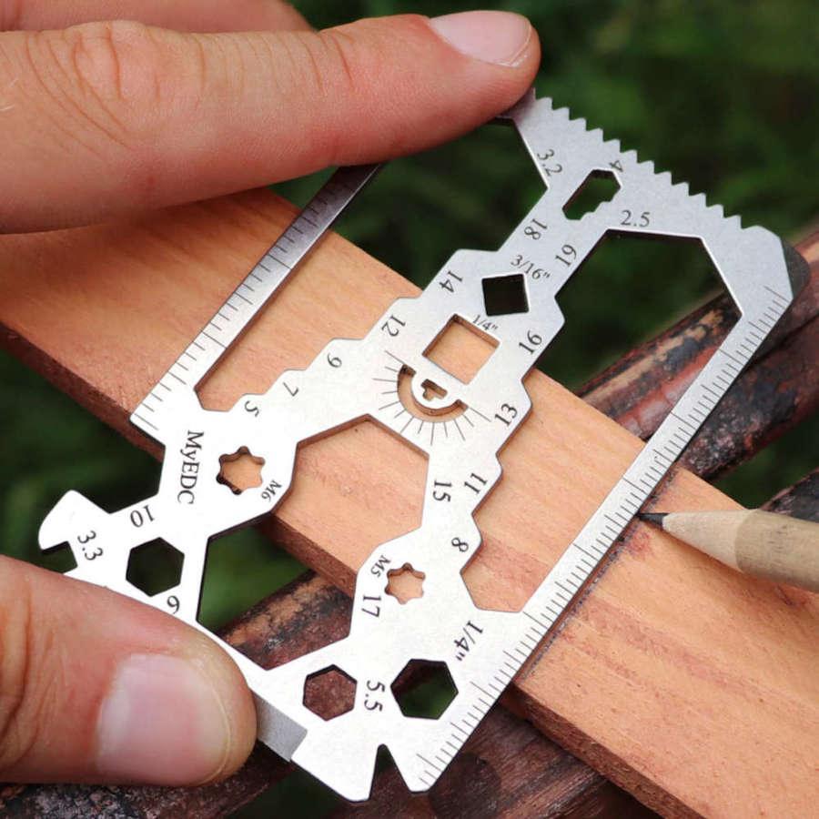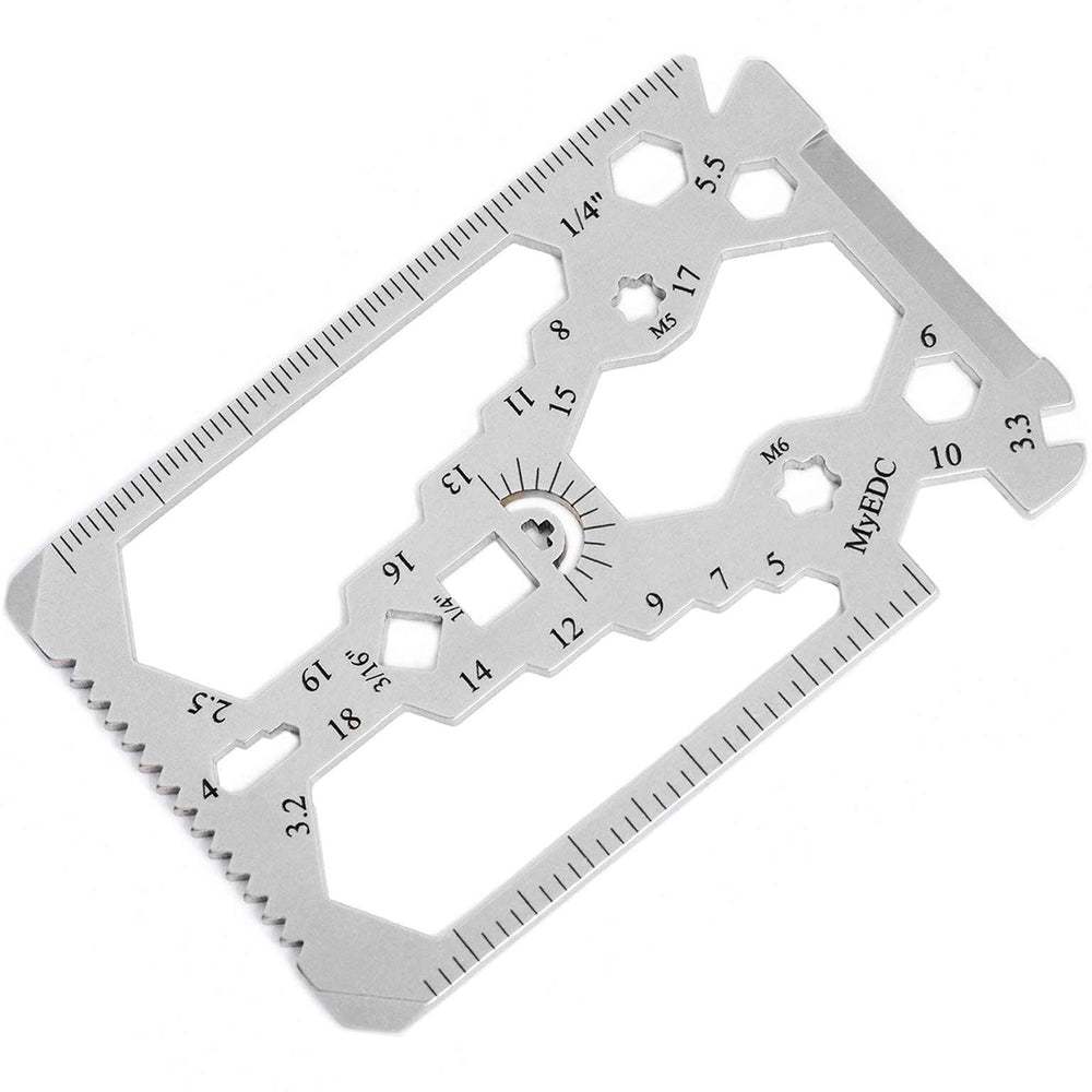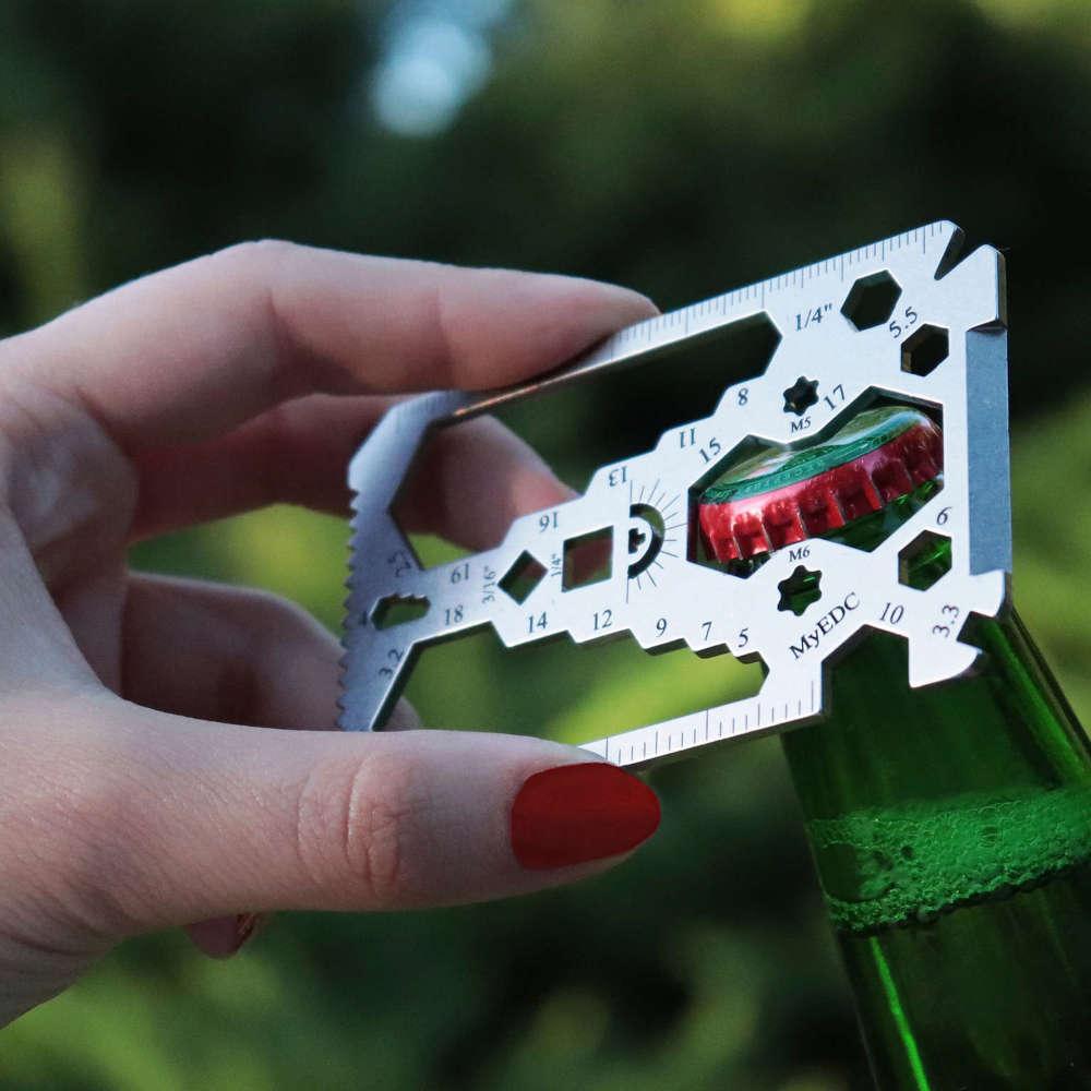 Das MyEDC 34 in 1 Multifunktionstool in Kartenformat wurde entwickelt, um Deinen Alltag leichter zu machen. Das Multitool wird aus 420 rostfreiem Stahl, wärmebehandelt auf 54 HRC in Europa gefertigt und hält so jeder Herausforderung stand. Durch seinen 24 Funktionen bist Du mit dem MyEDC Multitool voll ausgestattet. Die Silberoberfläche und die kratzfeste Lasergravur machen das Multitool kratzfest und zu Deinem lebenslangen Begleiter. Und trotz seiner umfänglichen Einsatzmöglichkeiten passt das MyEDC 34 in 1 Multifunktionstool in jede Geldbörse!