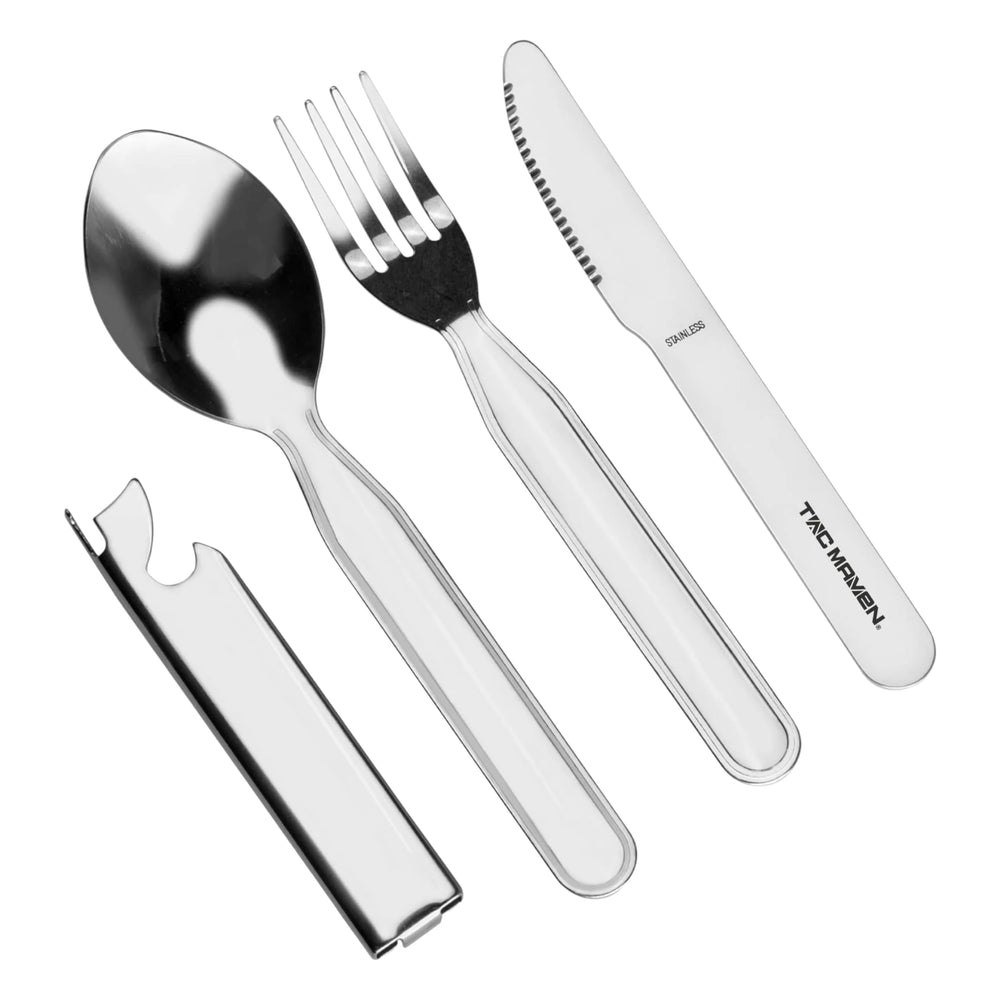 • 4-in-1 Besteck: Messer, Gabel, Löffel & Flaschenöffner