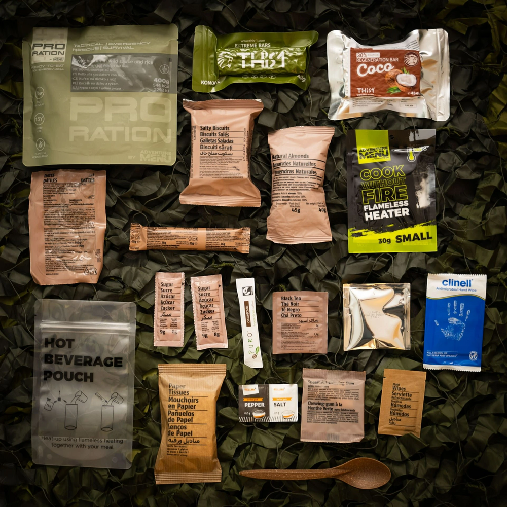 Das Pro-Ration Ultimate Tactical Ration Halbtagesmenü III bietet eine nahrhafte und wohlschmeckende Kombination aus einer warmen Mahlzeit und einer Auswahl an energiereichen Snacks, perfekt für lange Outdoor-Tage oder anspruchsvolle Einsätze. Dieses praktische und kompakte Set enthält alles, was du für eine halbtägige Versorgung benötigst, inklusive eines flammenlosen Heizkissens, um das Hauptgericht schnell und einfach zu erwärmen.