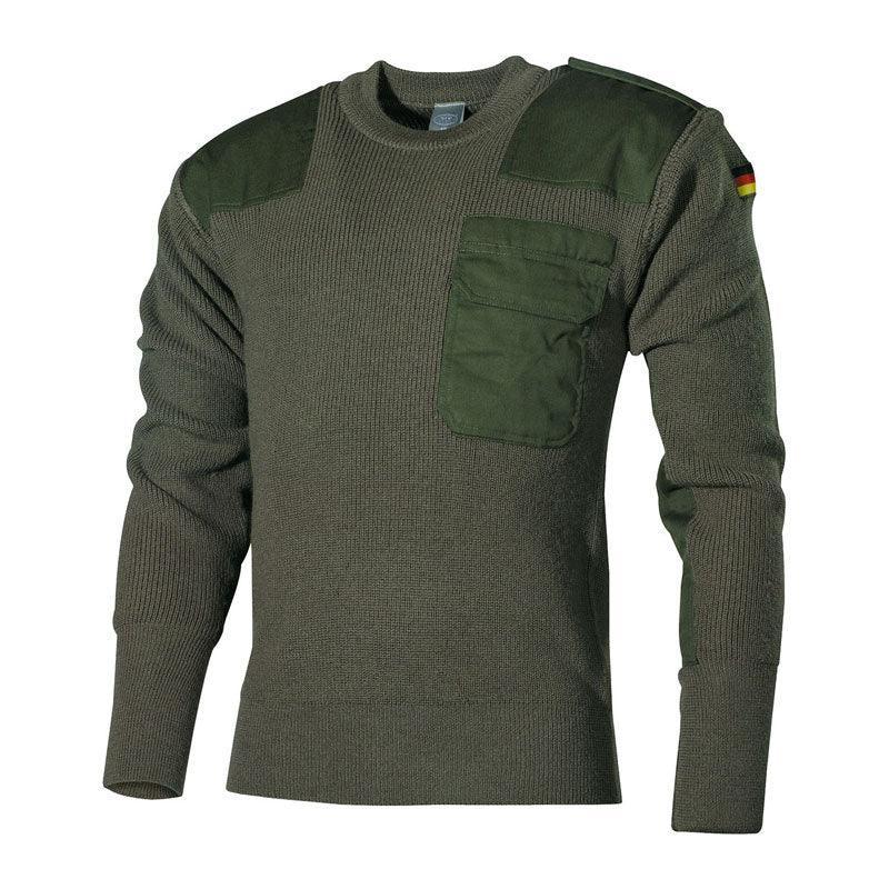 Der Bundeswehr Pullover von MFH ist ein optimales Kleidungsstück für jeden Militaristen. Das schlichte und zeitlose Design ermöglicht einen vielfältigen Gebrauch im Militär oder in der Freizeit. Der Pullover hat eine aufgesetzte Brusttasche links mit Patte und Klett.