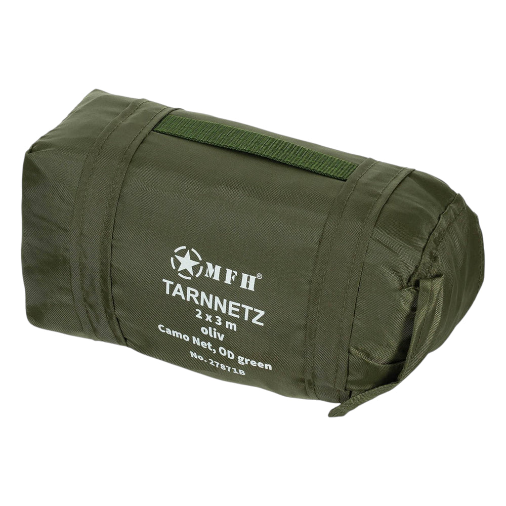 Das Tarnnetz eine Grösse von 2 x 3 Meter und drei verschieden Olivtöne. Dadurch tarnt es optimal alles was auf einem grünen Hinter- oder Untergrund ist. Das Netz ist umlaufend eingefasst, hat ein Trägernetz und Metallringe an den Ecken. Dadurch kannst Du das Netzt ohne Problem überall befestigen. Das Material besteht zu 100% aus Polyester und ist somit sehr qualitativ und stabil. Integriert ist zudem ein Transportbeutel mit Kordanzug und Klettverschluss.
