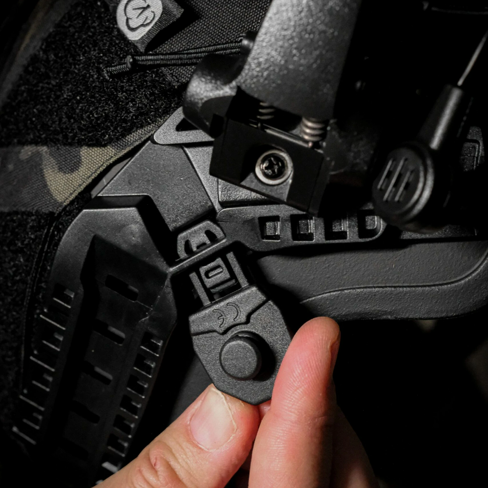 Headband Schwarzes Headband mit Silikonwellen mit zwei verstellbaren/magnetischen Verschlüssen zur Befestigung am Rail-System am Helm, Mikrofaserbeutel und Etui