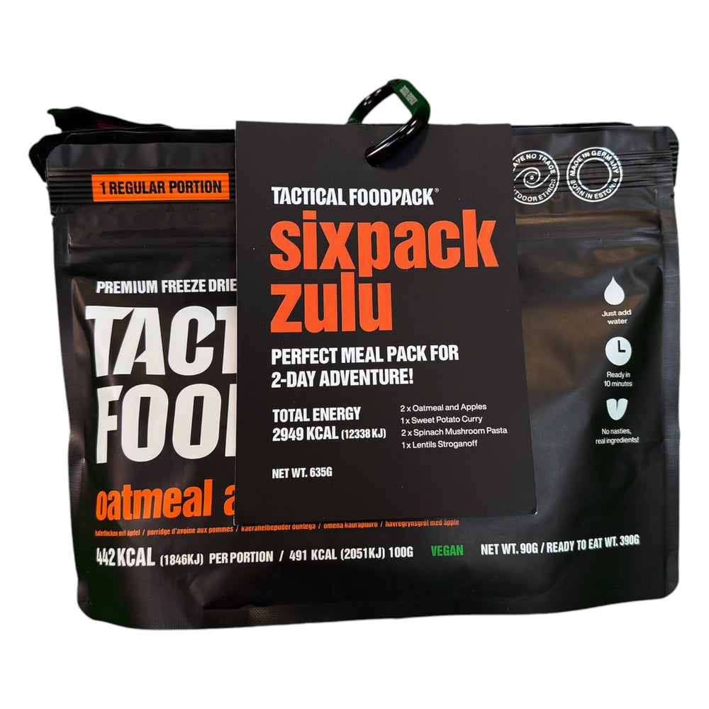 Das Tactical Foodpack Zulu bietet dir sechs köstliche, gefriergetrocknete Mahlzeiten, die speziell für Outdoor-Abenteuer und Notfälle entwickelt wurden. Mit rein vegetarischen und veganen Rezepturen ist dieses Set ideal für alle, die Wert auf bewusste Ernährung legen. Die Mahlzeiten sind leicht, kompakt und einfach zuzubereiten – perfekt für Wanderungen, Expeditionen oder als Notfallvorrat. Jede Mahlzeit überzeugt mit hochwertigen Zutaten und liefert die nötige Energie für aktive Tage. Die lange Haltbarkeit macht sie zum zuverlässigen Begleiter für jede Gelegenheit.
