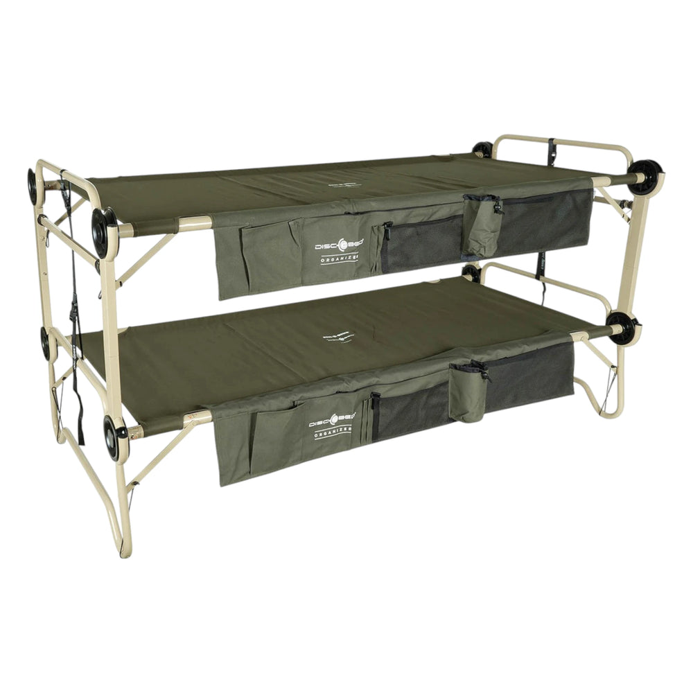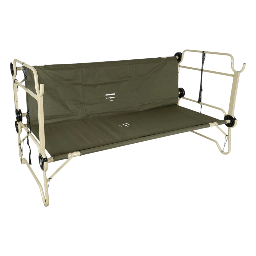 Die Arm-O-Bunk ist das stärkste und stabilste Modell der Disc-O-Bed-Serie – entwickelt für höchste Ansprüche wie im militärischen Einsatz. Mit ihrer grosszügigen Liegefläche und einer Belastbarkeit von 272 kg pro Bett bietet sie maximalen Komfort und Stabilität. Sie lässt sich als Etagenbett, zwei Einzelbetten oder tagsüber als Sitzbank nutzen. Zusätzliche Seitenstabilisatoren sorgen für sicheren Stand, auch auf unebenem Boden. In den praktischen Seitentaschen verstauen Sie wichtige Utensilien griffbereit. Trotz ihrer massiven Bauweise ist die Arm-O-Bunk in strapazierfähigen Transporttaschen gut verpackt und transportierbar.