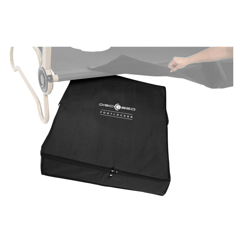 Der Disc-O-Bed Footlocker schafft Ordnung direkt unter deinem Bett – ideal für Kleidung und persönliche Gegenstände. Mit seinen kompakten Massen passt er perfekt unter alle Erwachsenenmodelle und nutzt den Stauraum optimal. Die robuste Konstruktion hält auch intensiver Nutzung im Outdoor-Bereich stand. Bei Nichtgebrauch lässt sich der Footlocker flach zusammenfalten und platzsparend verstauen. Ob beim Campen oder auf Reisen – so bleibt dein Zelt aufgeräumt. Die schlichte Farbe Schwarz fügt sich unauffällig in jedes Setup ein.