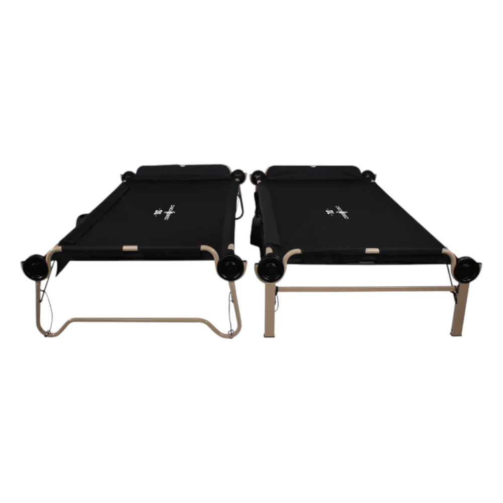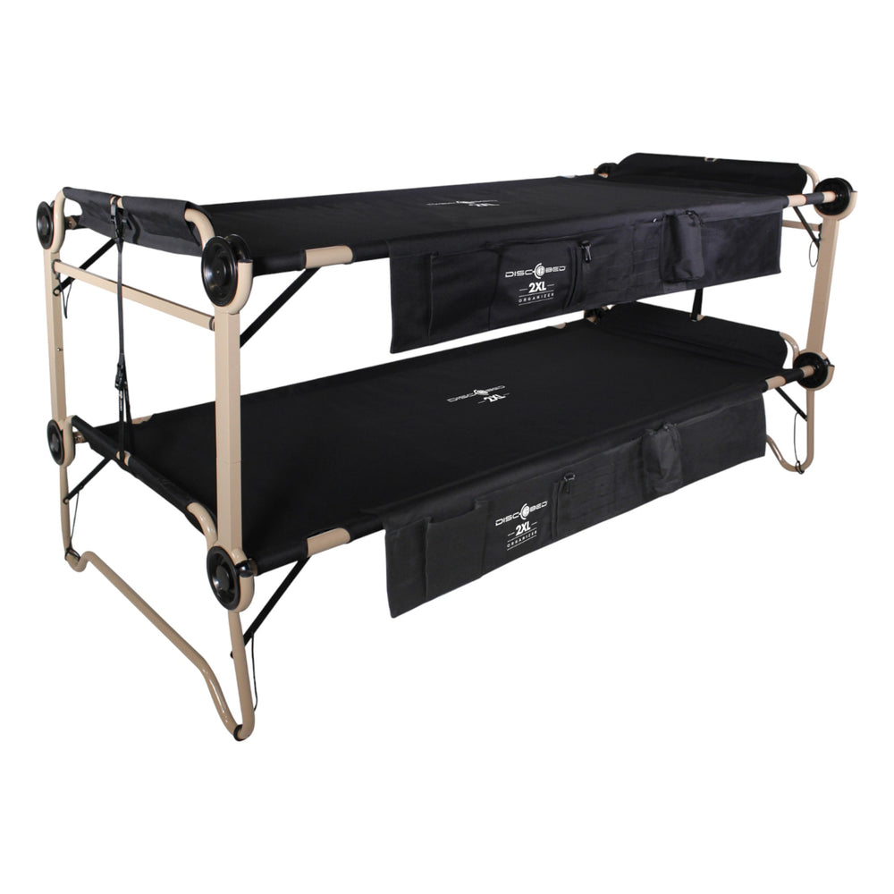 Das Disc-O-Bed Feldbett XXL ist das grösste Modell der Serie und bietet selbst grossen Personen maximalen Komfort beim Campen oder als Gästebett. Mit einer Liegefläche von 215 x 100 cm und einer Belastbarkeit von 272 kg pro Bett ist es besonders robust und komfortabel. Dank des flexiblen Designs lässt es sich als Etagenbett, zwei Einzelbetten oder als praktische Sitzbank nutzen. Der Aufbau gelingt schnell und ohne Werkzeug dank des patentierten Disc-Systems. In den Seitentaschen verstauen Sie persönliche Dinge griffbereit und halten Ordnung im Zelt. Trotz seiner Grösse ist das Bett in zwei Tragetaschen verpackt und damit gut transportierbar.