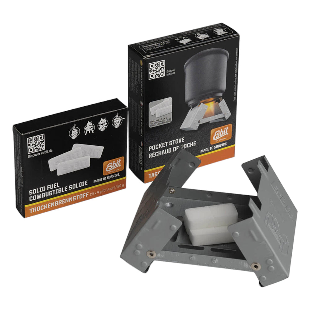 • Kommt mit 20 x 4g Trockenbrennstofftabletten, die eine Brenndauer von etwa 5 Minuten pro Tablette haben