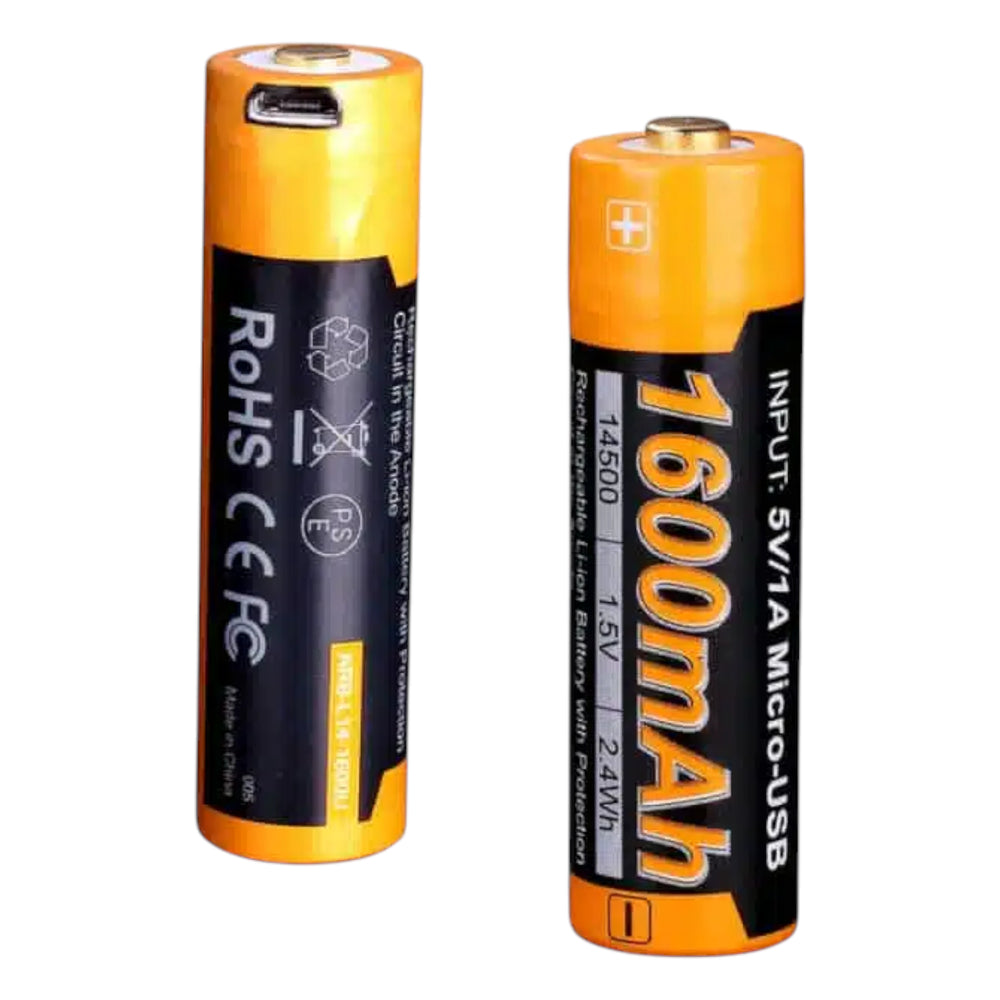 Der Fenix ARB-L14-1600U ist ein kompakter Li-Ionen-Akku im 14500-Format mit praktischer Micro-USB-Ladefunktion. Mit 1600 mAh Kapazität bietet er eine leistungsstarke und nachhaltige Alternative zu herkömmlichen AA-Batterien. Die integrierte Schutzschaltung und das robuste Stahlgehäuse sorgen für zuverlässigen Betrieb und erhöhte Sicherheit. Ideal für Taschenlampen oder Geräte, die eine konstante und starke Stromversorgung benötigen. Einfach direkt aufladbar – ohne zusätzliches Ladegerät.
