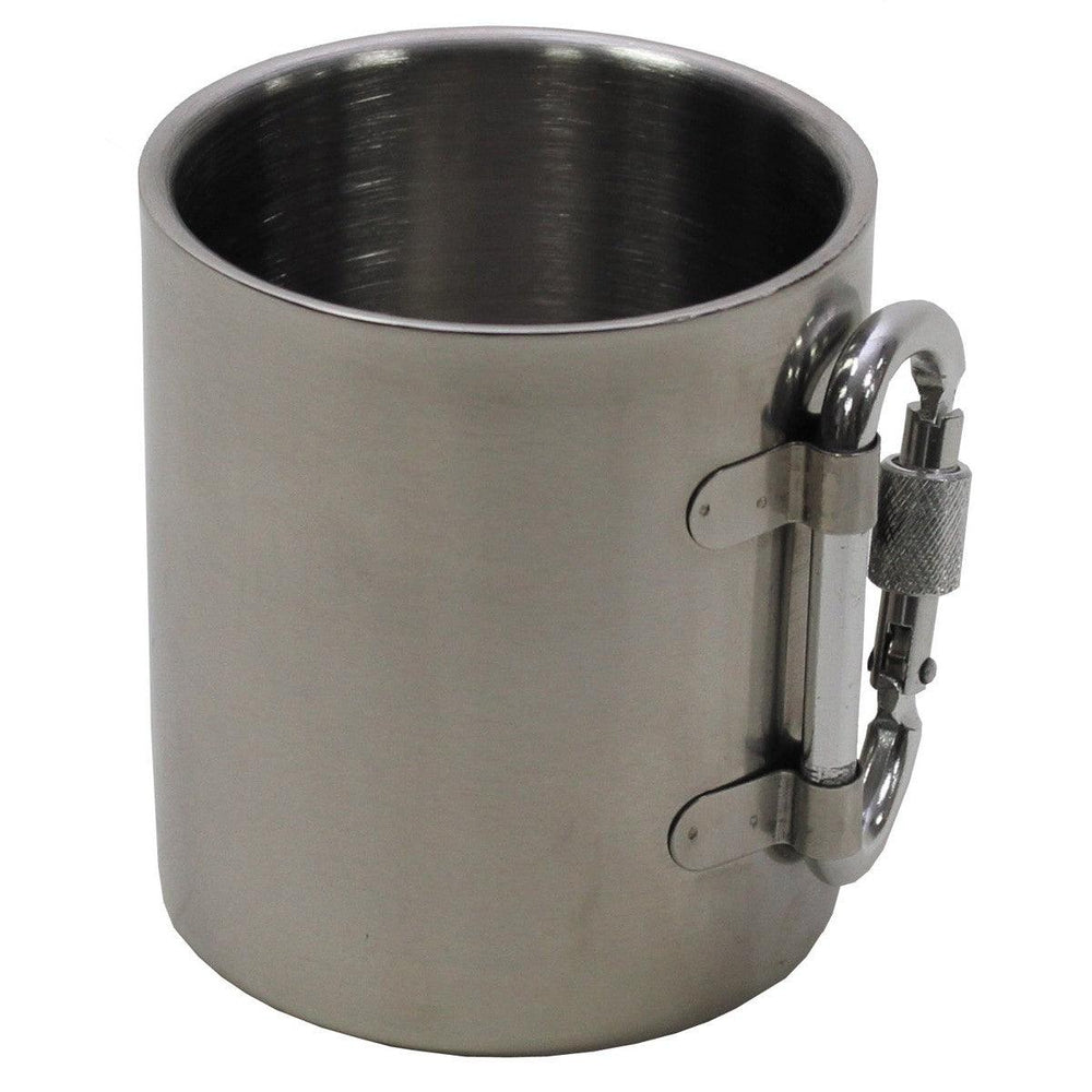 Die doppelwandige Edelstahl-Tasse mit einem Fassungsvermögen von 300 ml ist ein praktischer Begleiter für unterwegs. Sie verfügt über einen Schraub-Karabinerhaken, der sowohl als Henkel als auch als Befestigungsmöglichkeit dient. Die seitlich klappbare Funktion ermöglicht eine kompakte Aufbewahrung und einfachen Transport. Die doppelwandige Konstruktion sorgt dafür, dass Getränke länger warm oder kalt bleiben.