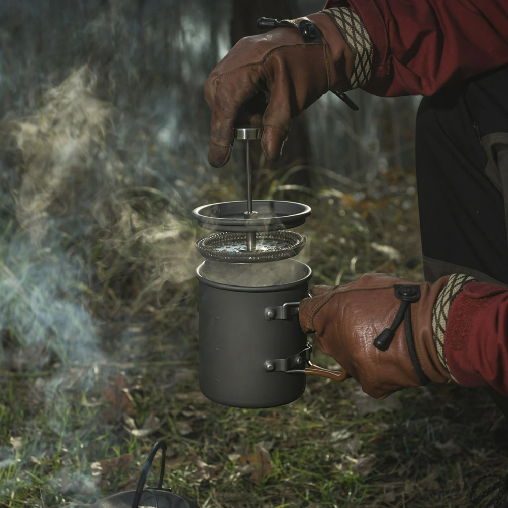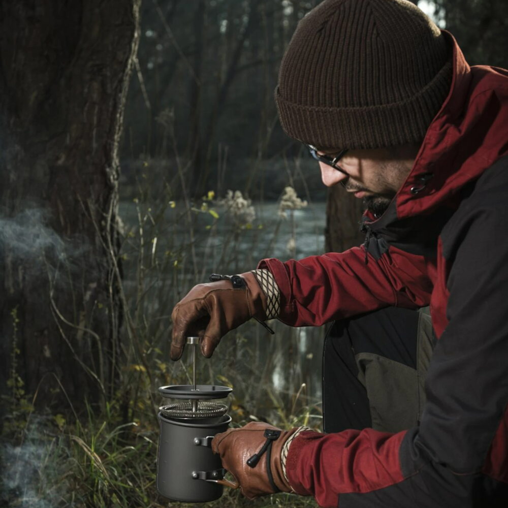 Das Helikon-Tex Camp French Press Coffee Set vereint die praktische CAMP French Press Coffee Cup mit dem passenden Coffee Press-Deckel inklusive Filtersystem – die ideale Kombination für Kaffeeliebhaber beim Camping oder Bushcraft. Der Becher besteht aus leichtem, hartanodisiertem Aluminium und fasst genug Kaffee für 2–3 Personen. Der Deckel mit integriertem Doppel-Filtersystem sorgt für ein sauberes, genussfertiges Ergebnis – ganz ohne Kaffeesatz im Mund. In Kombination mit der CAMP Hand Coffee Grinder wird daraus ein vollständiges mobiles Kaffee-Set für Outdoor-Abenteuer oder den Alltag zuhause.