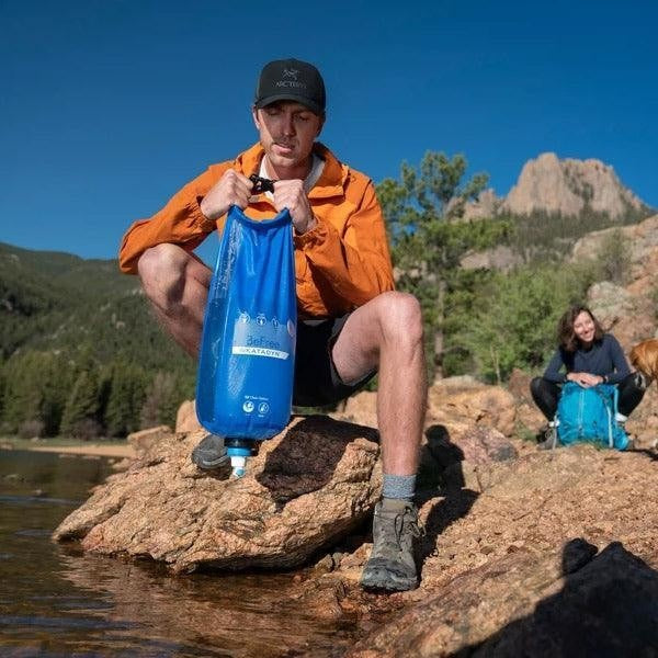 Gefiltertes Wasser kann in einem separaten Kanister, einer Flasche oder einem Wasserbeutel aufbewahrt werden. Die Offnung des Kanisters, der Flasche oder des Beutels für gefiltertes Wasser sollte so klein wie möglich sein, damit kein Schmutz eindringen kann. Wenn das gefilterte Wasser nicht am selben Tag verwendet wird, lässt es sich mit Katadyn Micropur sicher und einfach konservieren.
