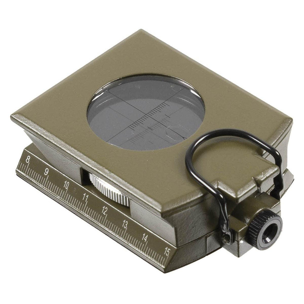 Der italienische Kompass ist flüssigkeitsgedämpft und hat ein Metallgehäuse. Die Kompassdose ist drehbar, hat einen Sucher mit Lupe und Kimme, sowie ein Deckel mit Sichtfenster und Peillinie. Ausserdem hat die Kompassrose eine 360°-Einteilung und fluoreszierende Markierungspunkte. Zusätzlich dazu hat der Kompass eine Anlegekante und eine cm-Skala. Ebenso bietet der Kompass einen klappbaren Neigungsmesser und eine Libelle/Wasserwaage, sowie einer Tabelle am Boden. Mit diesem kompakten Kompass hast Du alles dabei, um Dich auf einer Wanderung oder während einem Ausflug mit einer Karte zu orientieren.