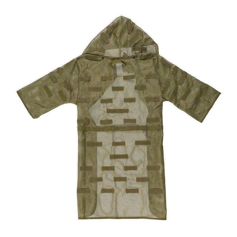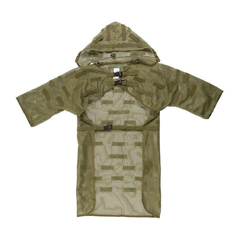 Der Netzmantel von MFH eignet sich optimal zu Tarnung in einer grünen Umgebung. Die Kapuze ist dank Druckknöpfen abnehmbar, weshalb Du diese ganz nach Deinem Bedürfnis montieren kannst.