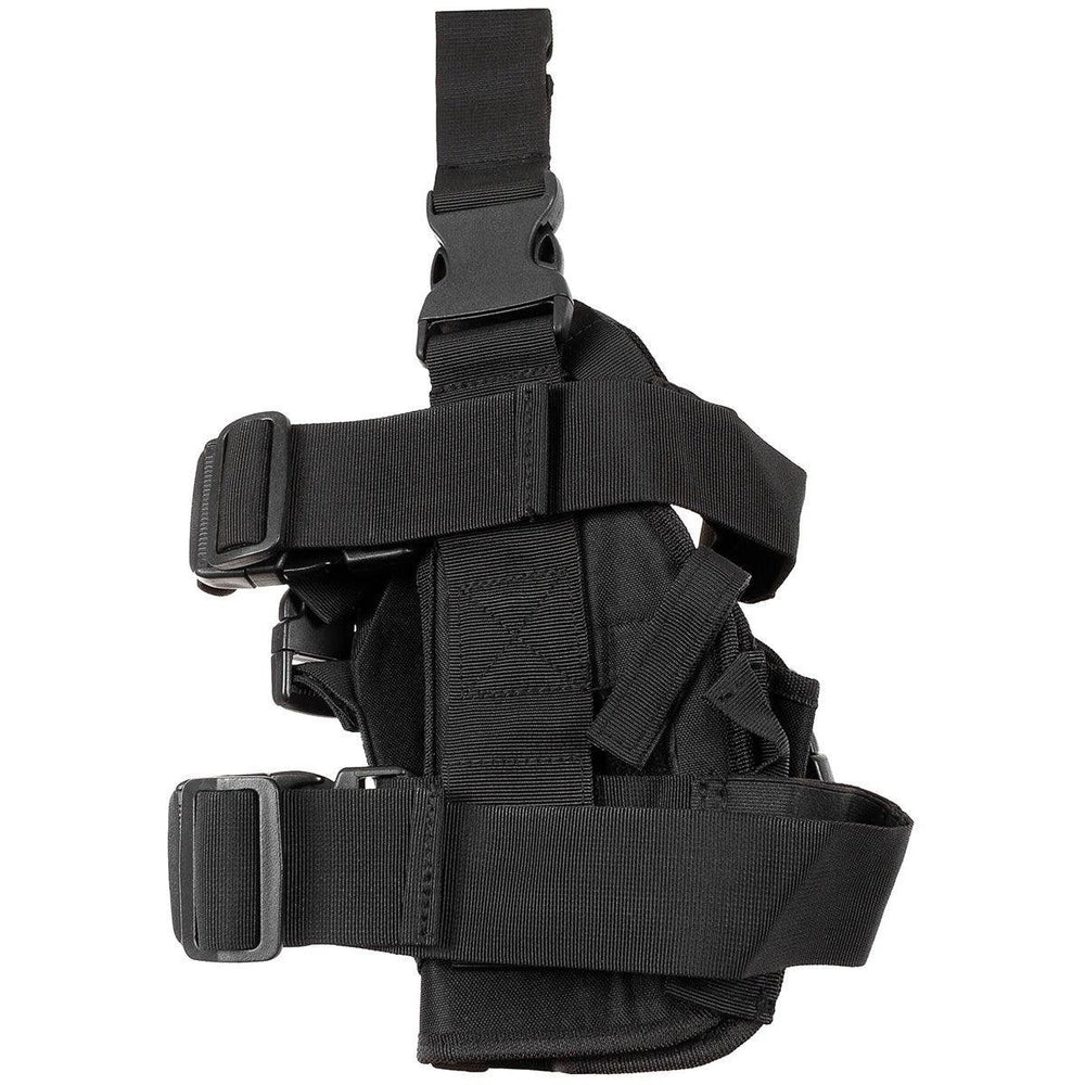 Dieses Pistolenbeinholster ist geeignet für Rechtshänder. Es hat 2 verstellbare, abnehmbare Beingurte mit Klickverschluss und elastischem Einsatz. Zusätzlich hat es einen abnehmbaren, verstellbaren Gürtelhalter mit Klickverschluss. Zur Sicherung der Pistole verhilft ein Sicherungsriemen mit Klett und Druckknopf. Ausserdem sind 3 Magazintaschen mit Klickverschluss aufgesetzt.